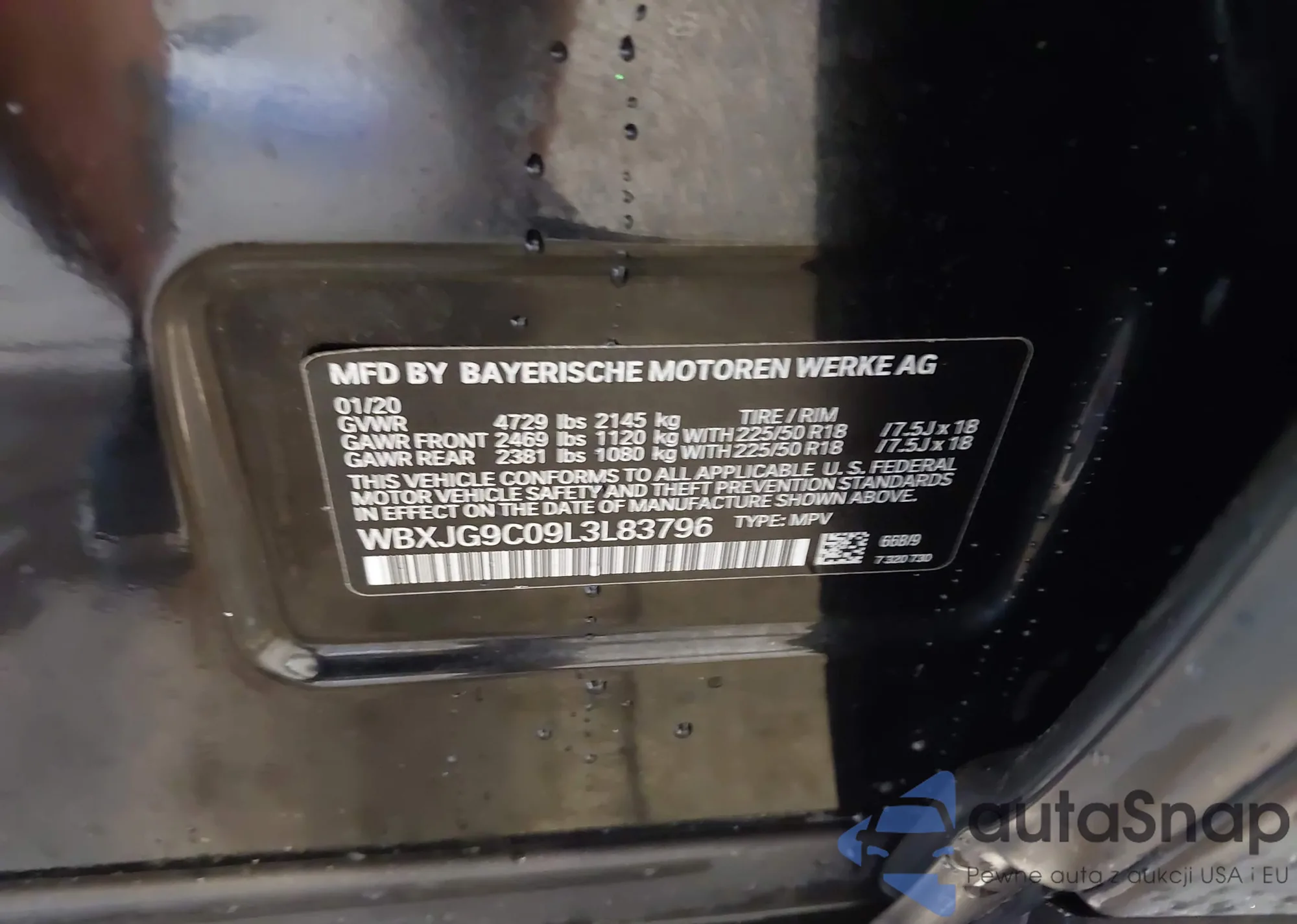 LOT: 43416895 VIN: WBXJG9C09L3L83796