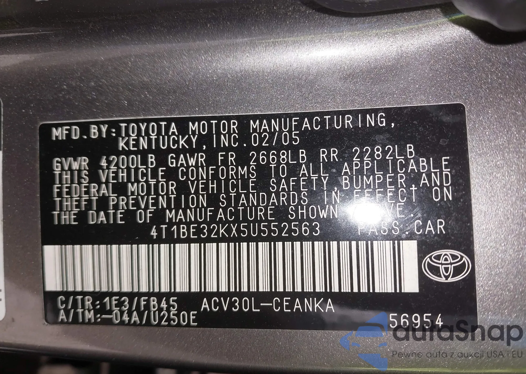 • VIN 4T1BE32KX5U552563