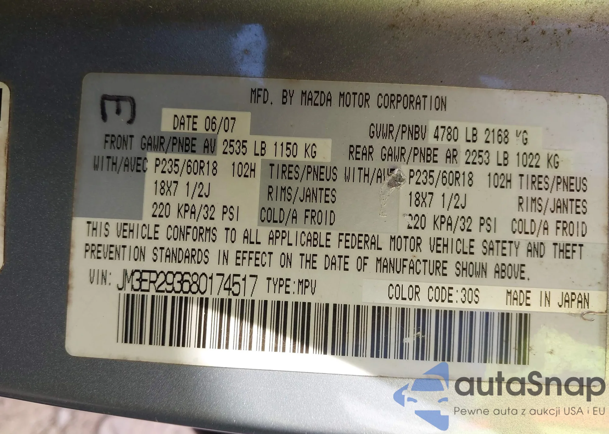 LOT: 43668455 VIN: JM3ER293680174517