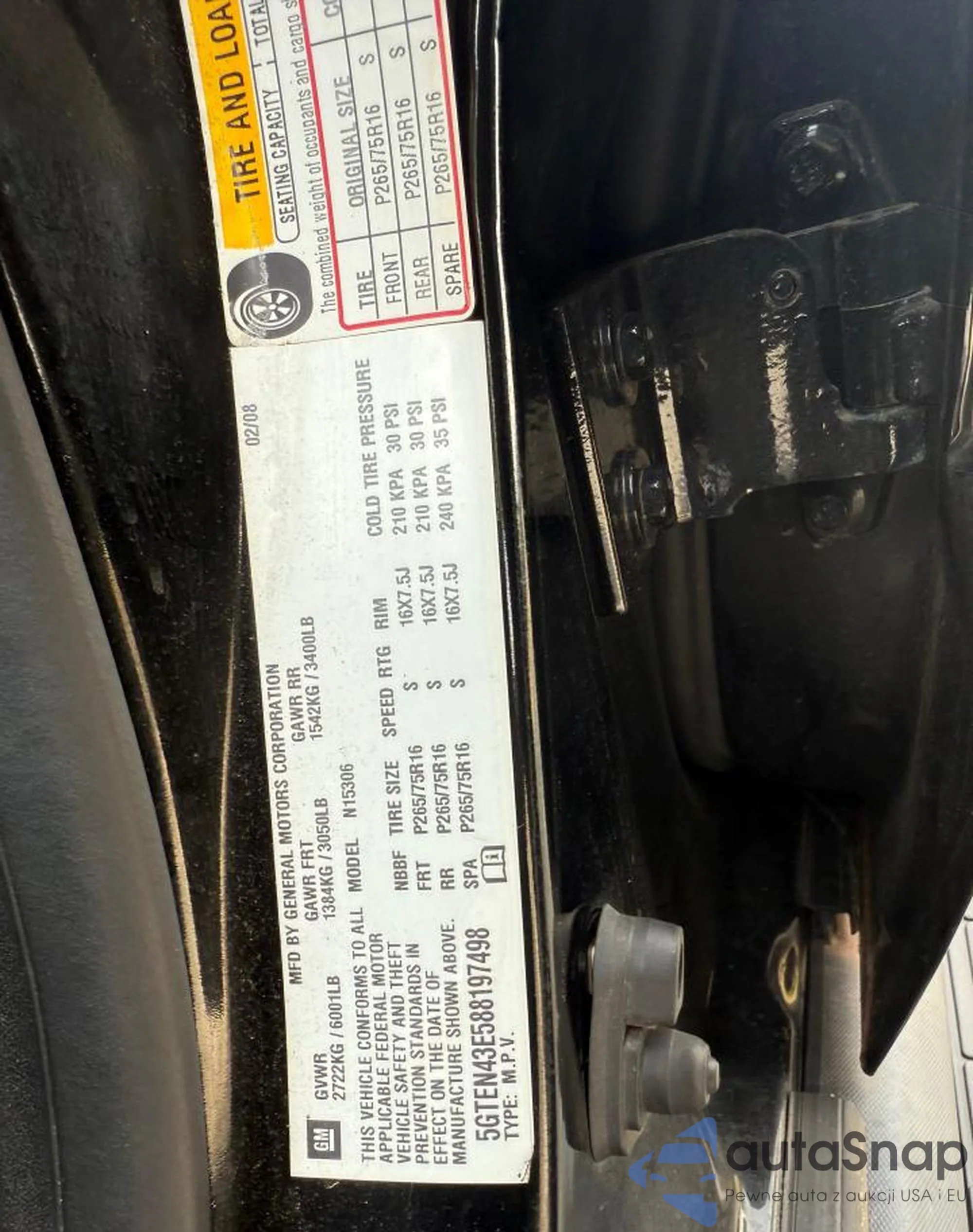 • VIN 5GTEN43E588197498