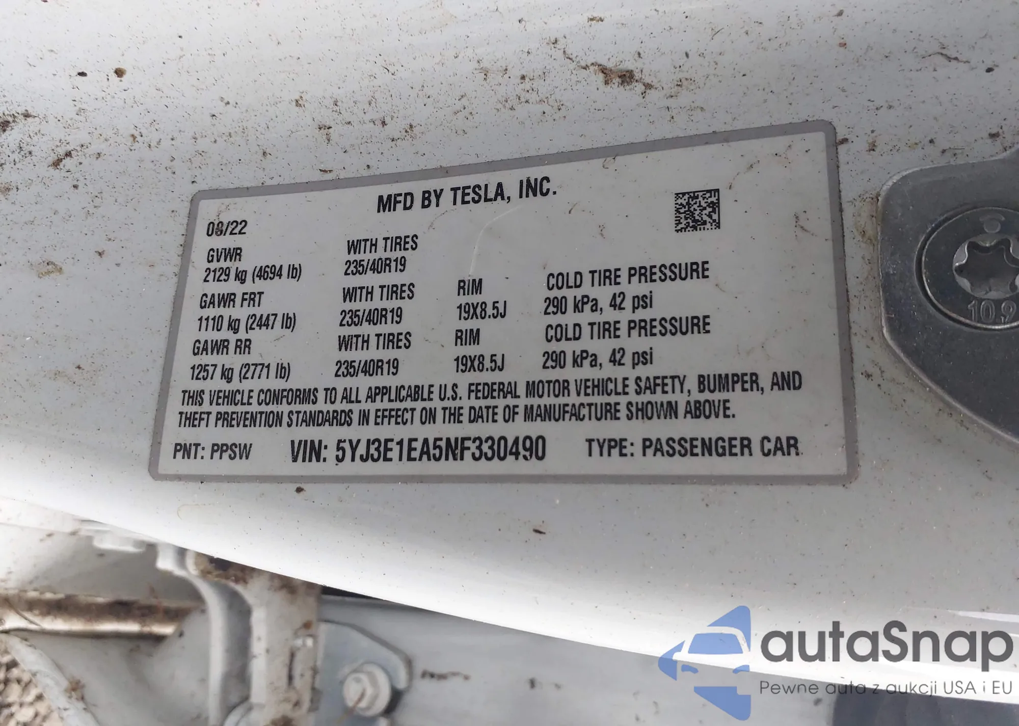 • VIN 5YJ3E1EA5NF330490