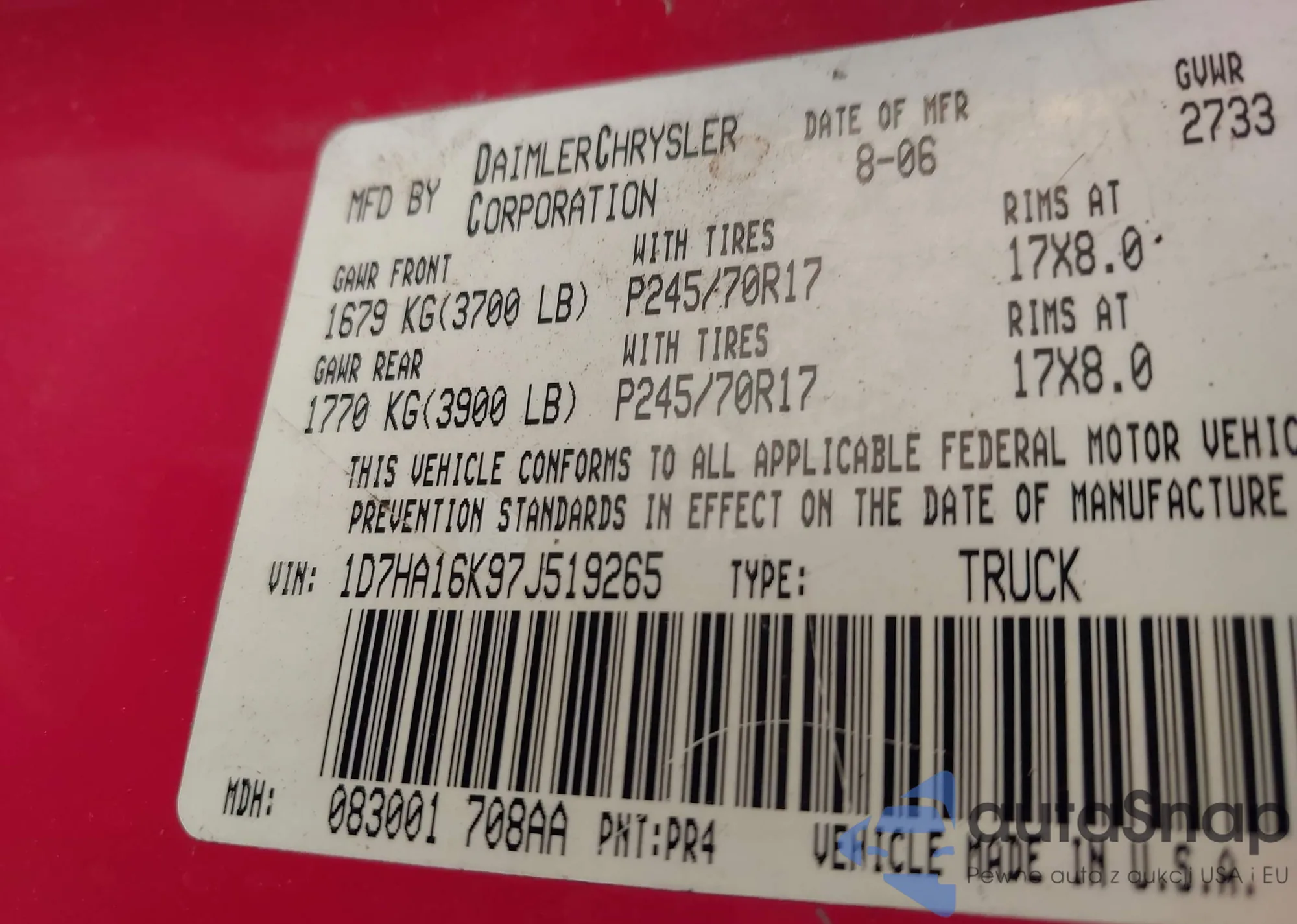 • VIN 1D7HA16K97J519265