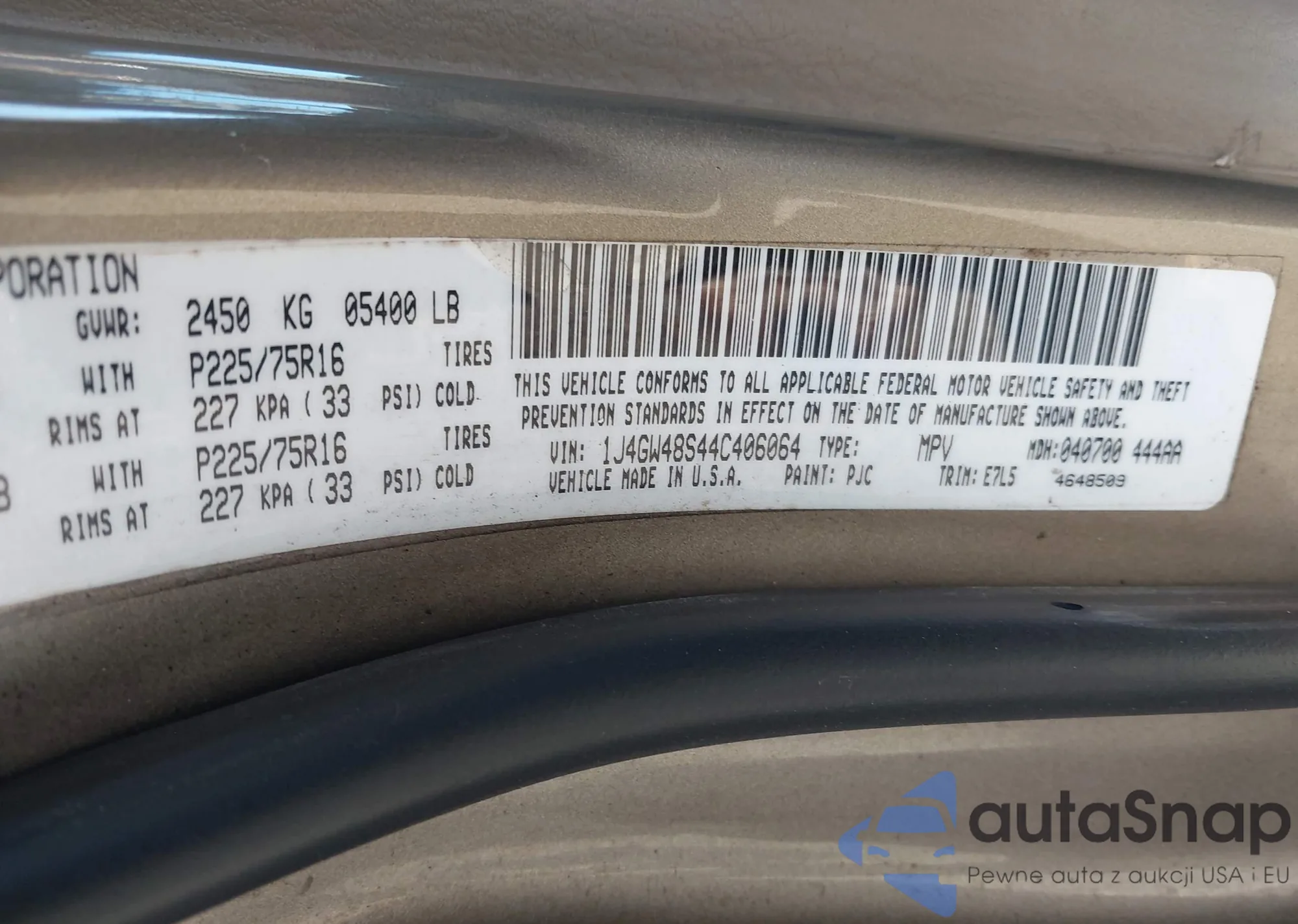 • VIN 1J4GW48S44C406064