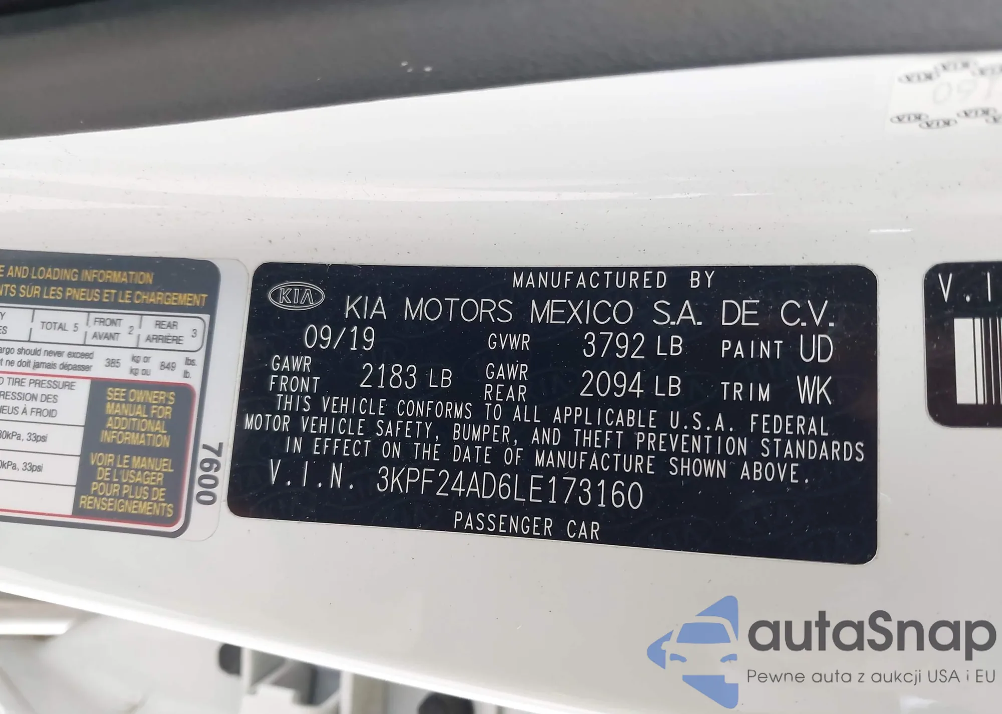 • VIN 3KPF24AD6LE173160