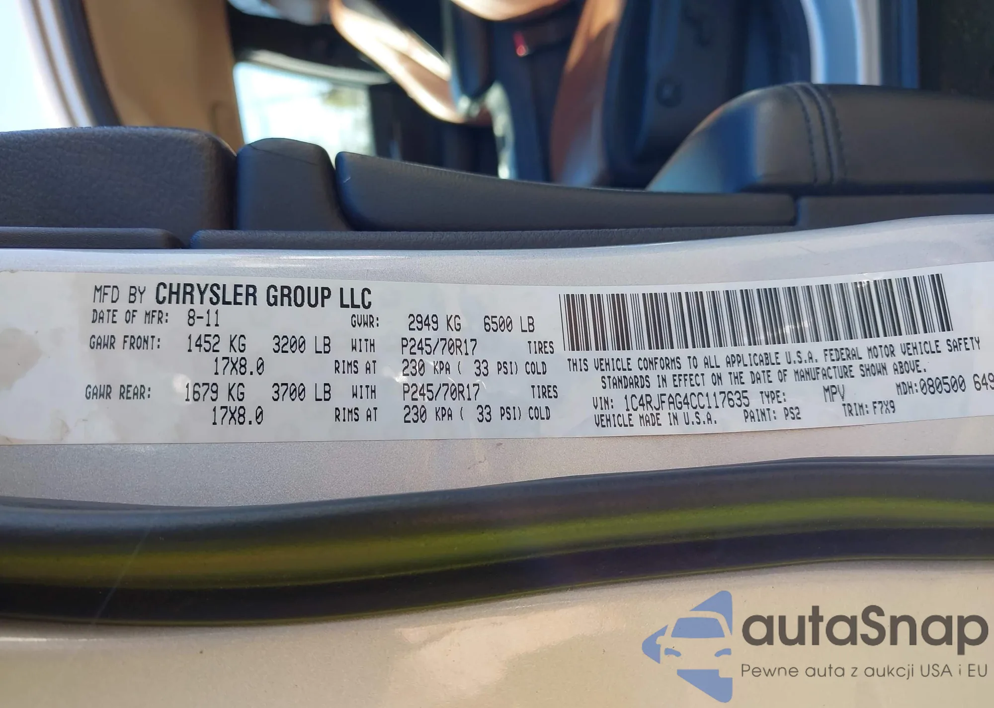 • VIN 1C4RJFAG4CC117635