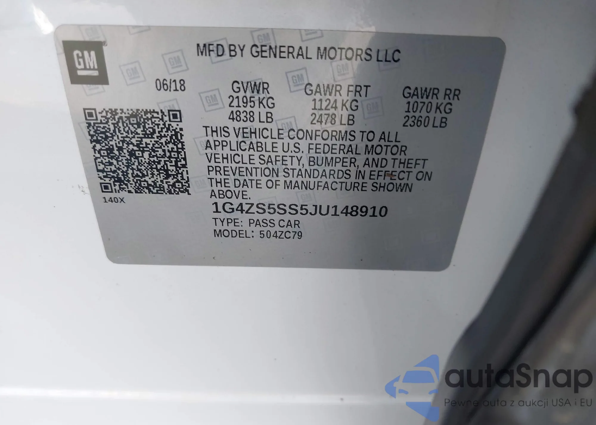 LOT: 42801674 VIN: 1G4ZS5SS5JU148910