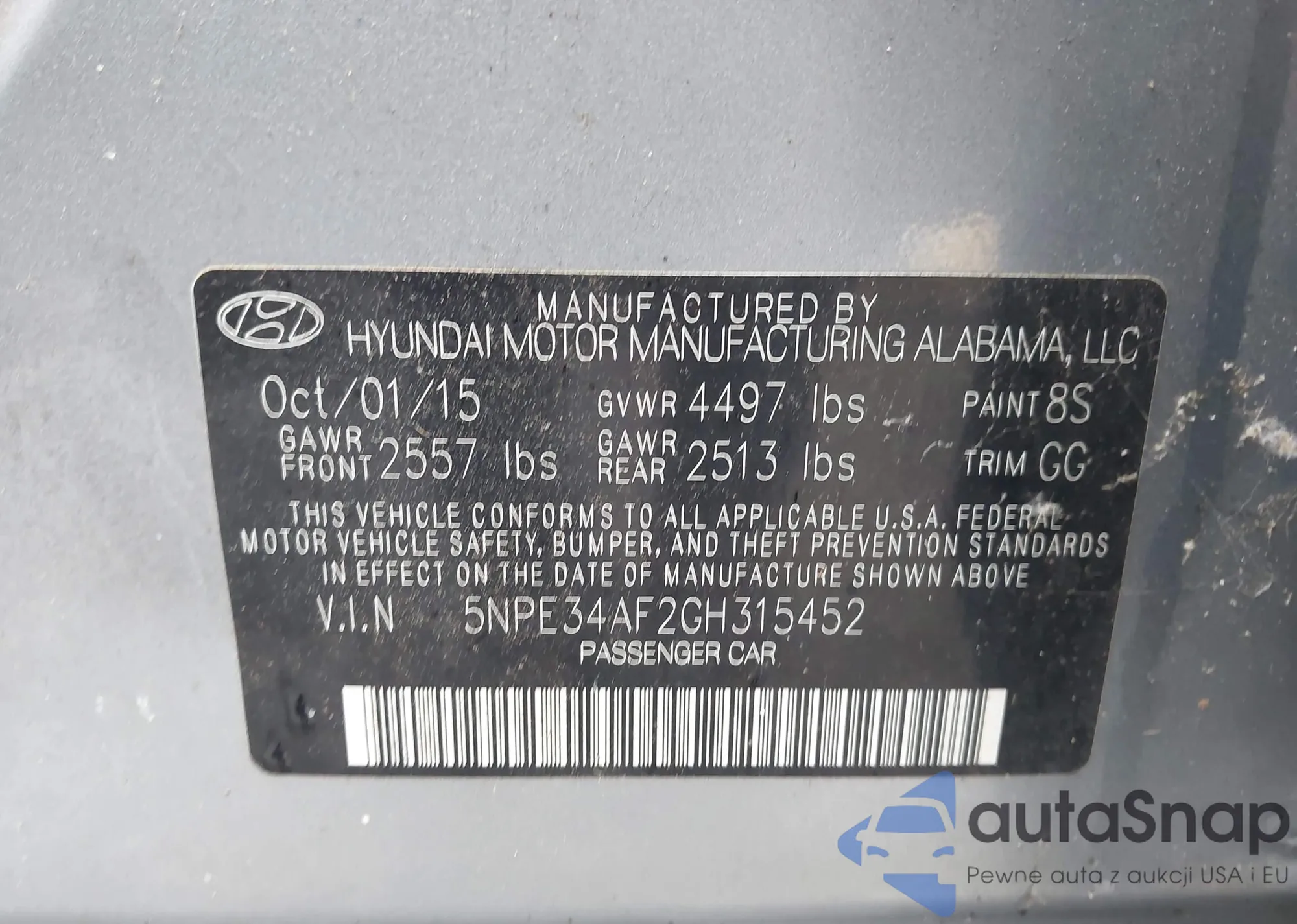 • VIN 5NPE34AF2GH315452