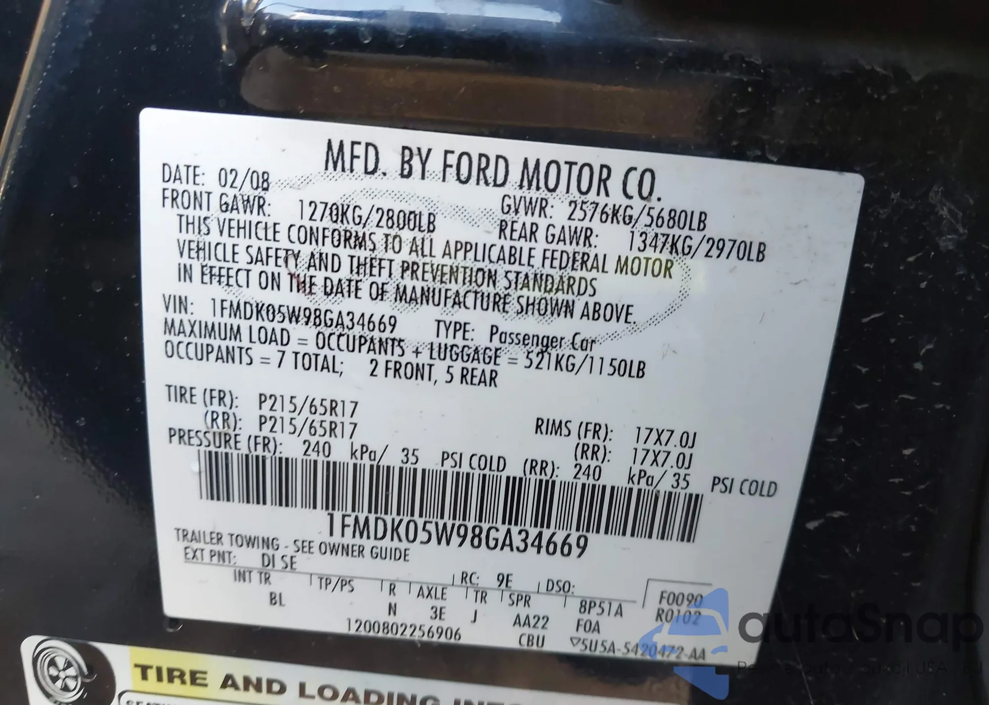 LOT: 43665272 VIN: 1FMDK05W98GA34669
