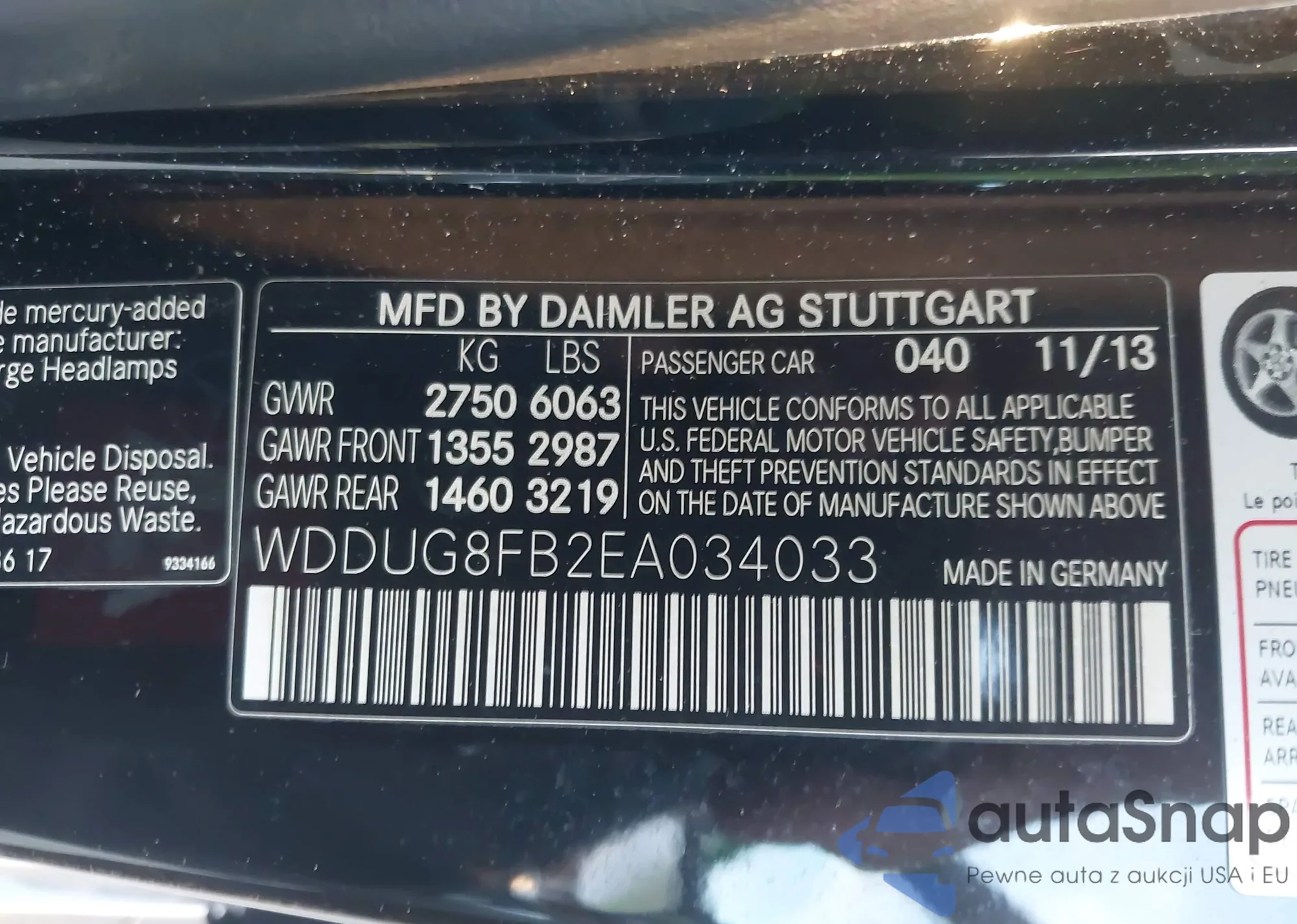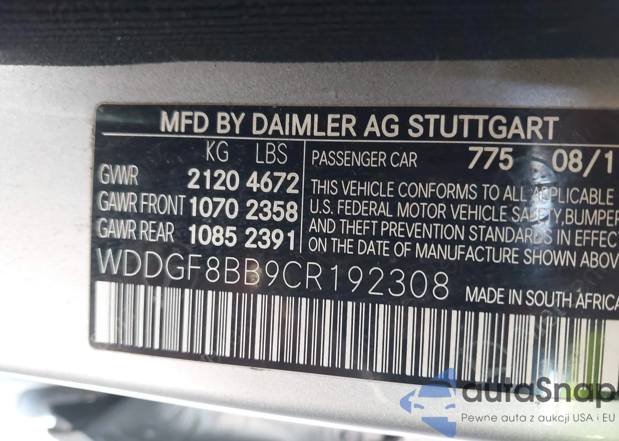 LOT: 43366445 VIN: WDDGF8BB9CR192308