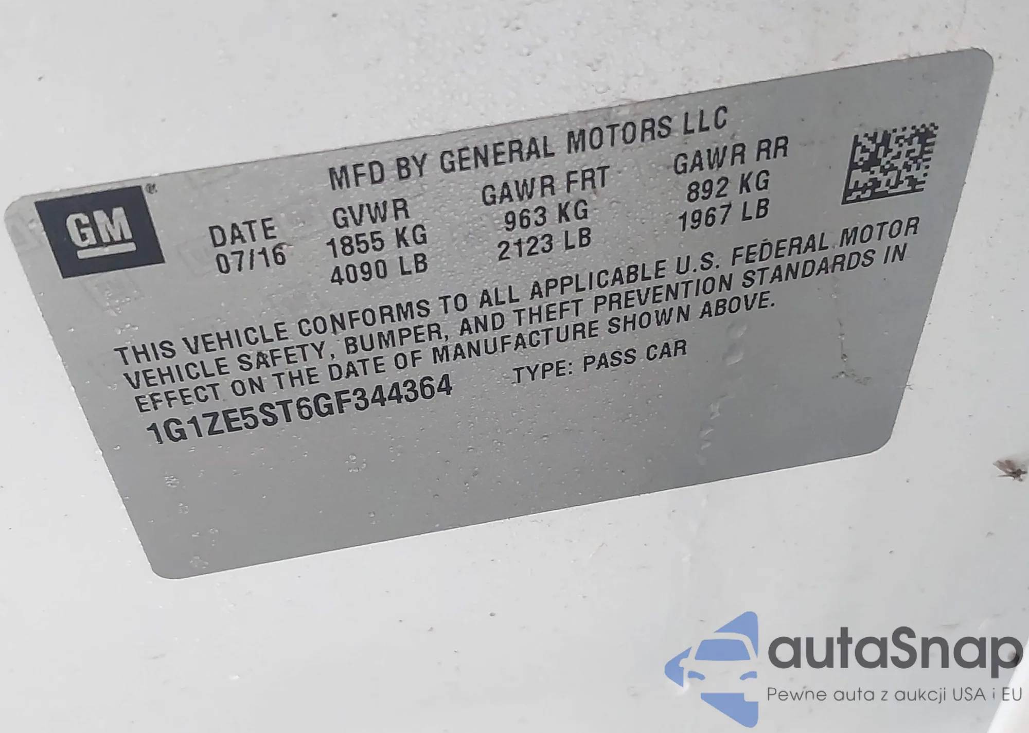 • VIN 1G1ZE5ST6GF344364
