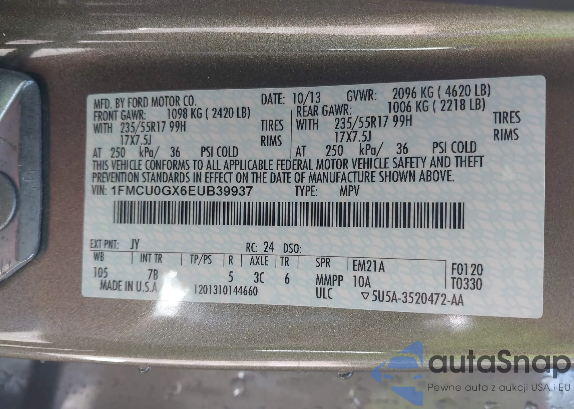 LOT: 43627935 VIN: 1FMCU0GX6EUB39937