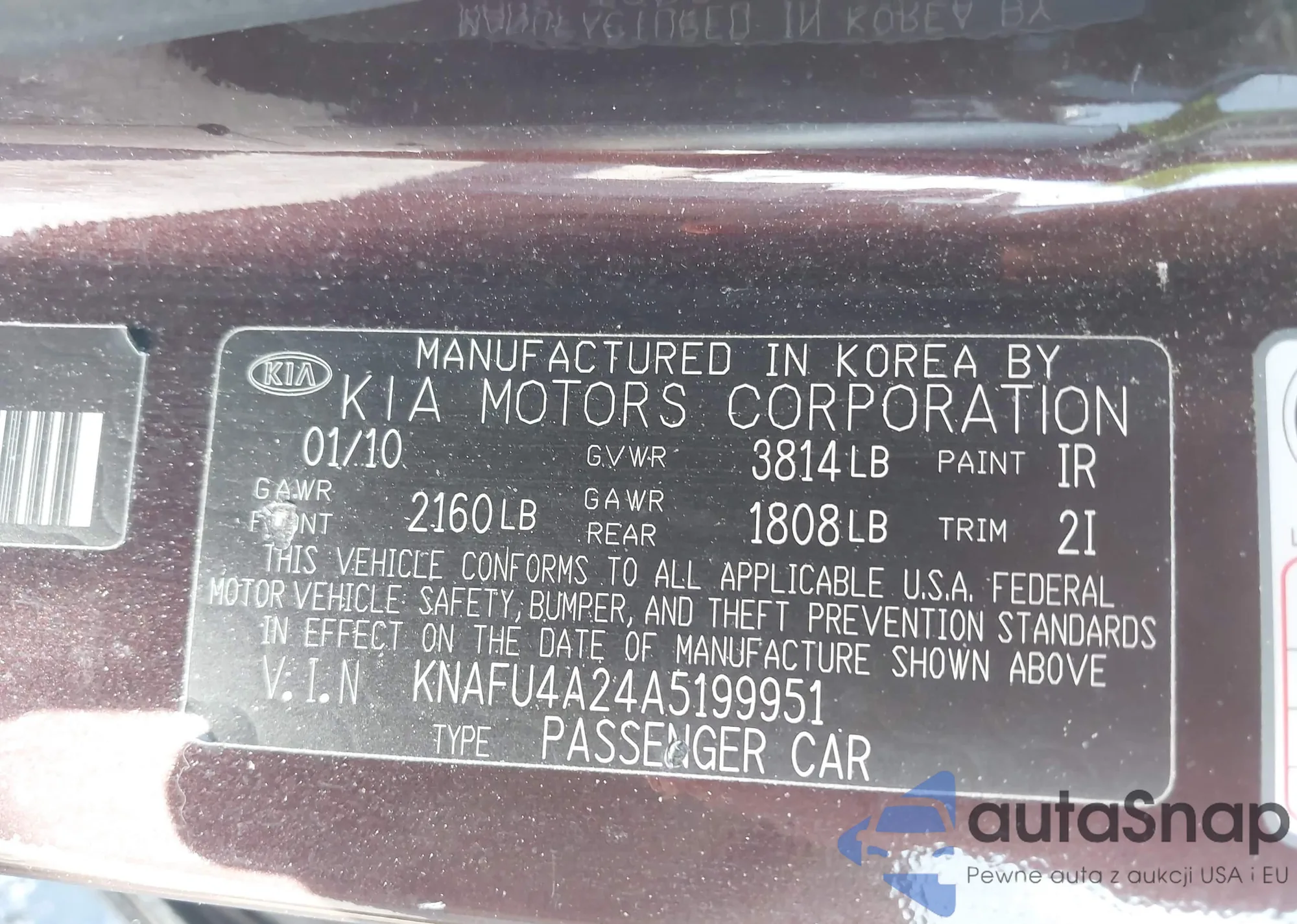 LOT: 43638973 VIN: KNAFU4A24A5199951