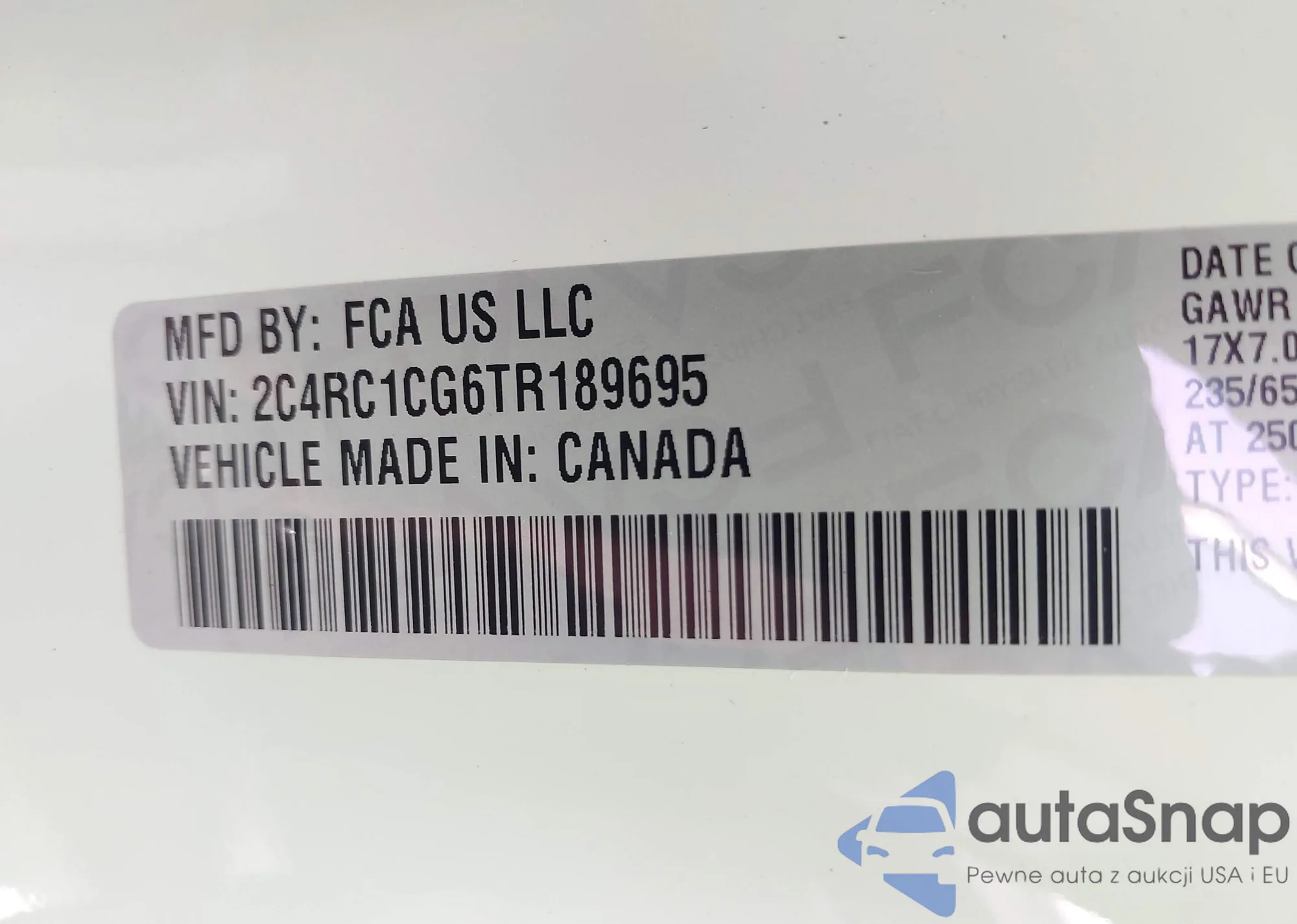• VIN 2C4RC1CG6TR189695