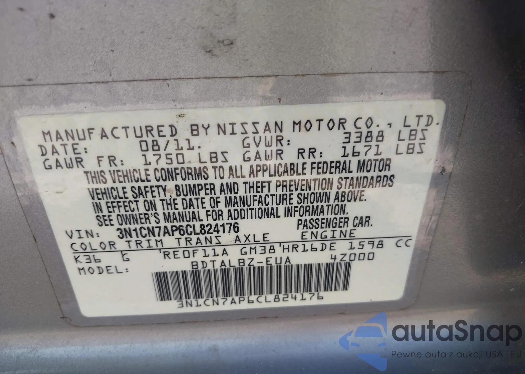 • VIN 3N1CN7AP6CL824176