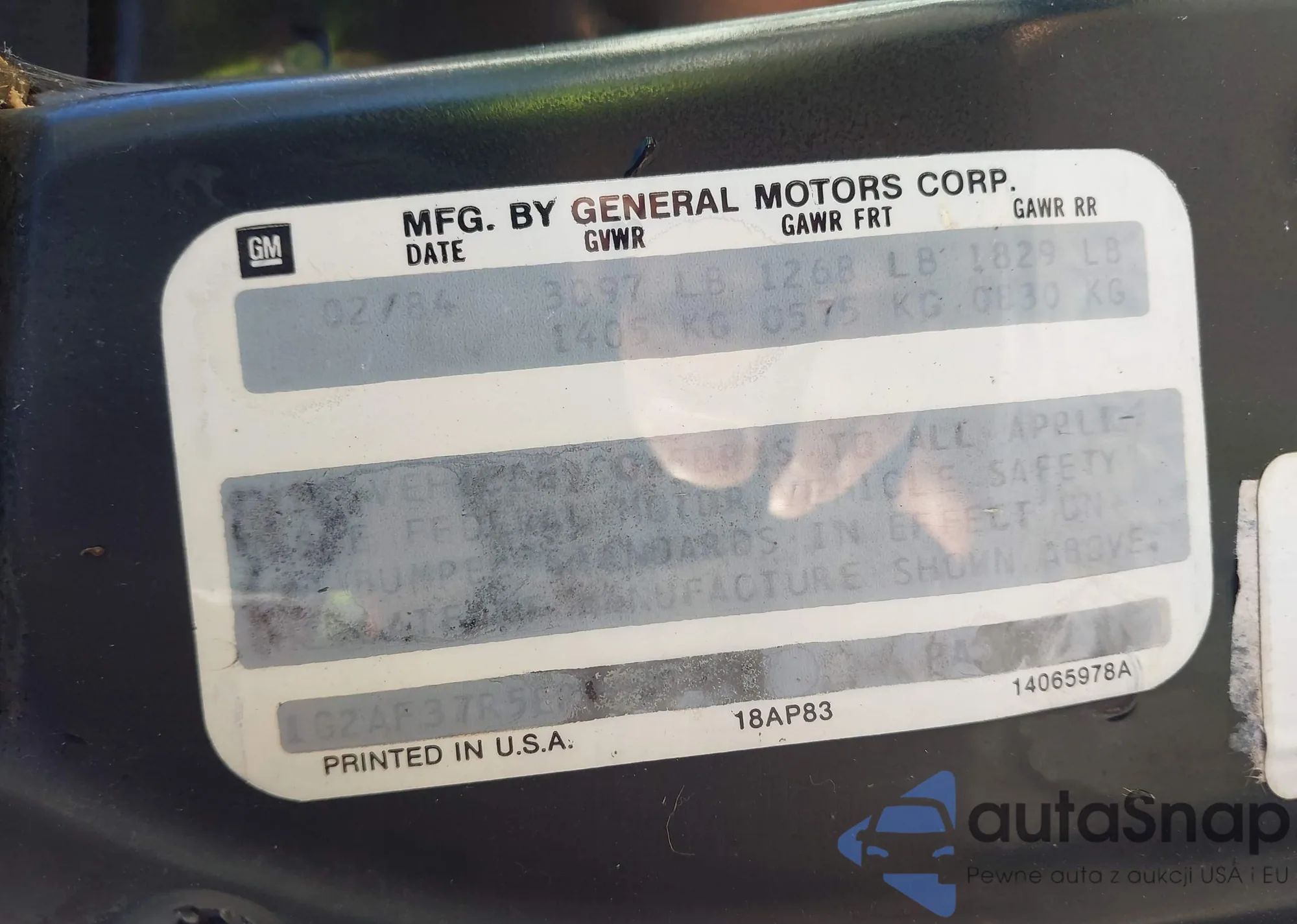 LOT: 43727069 VIN: 1G2AF37R5EP250197