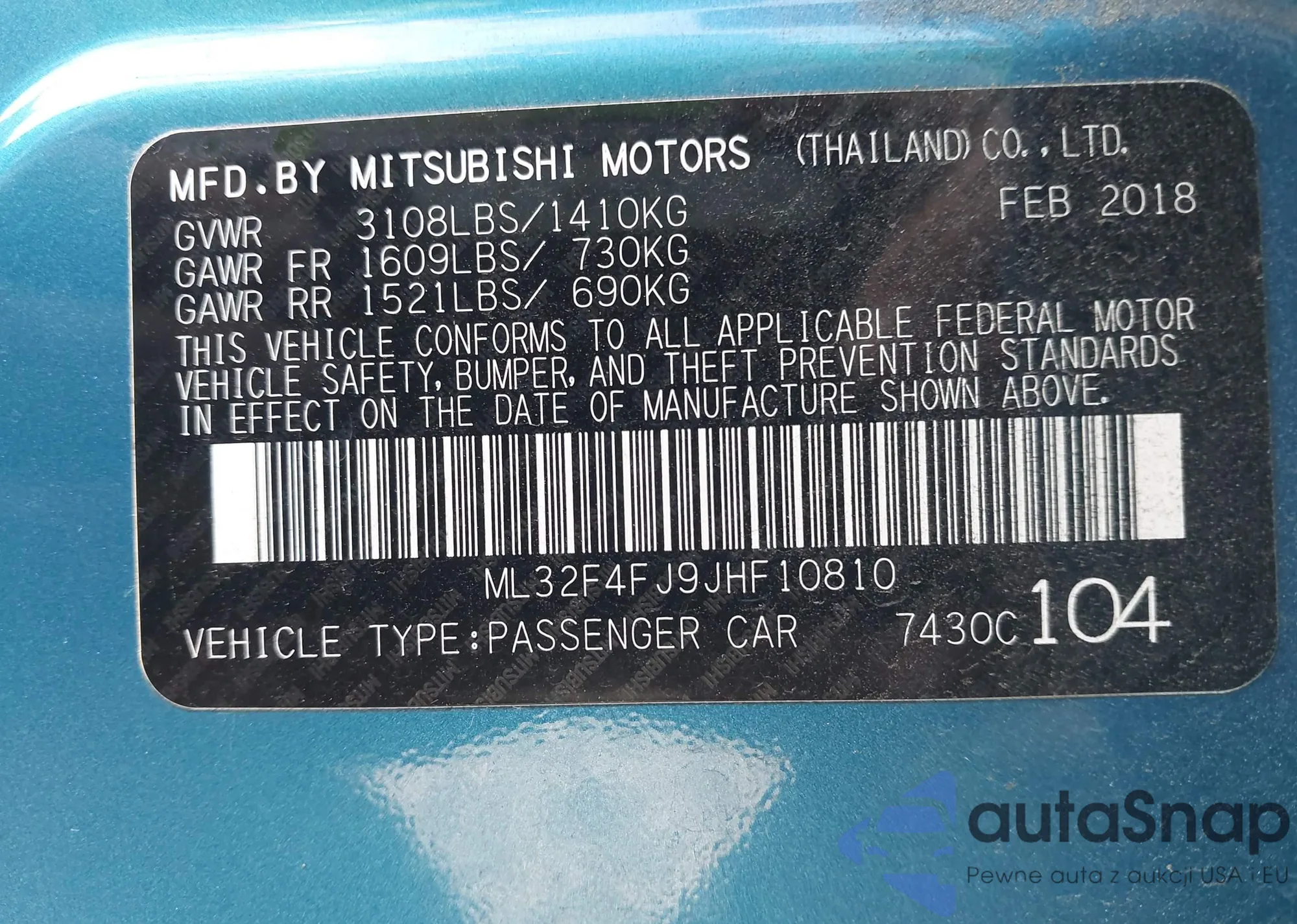 LOT: 43657952 VIN: ML32F4FJ9JHF10810