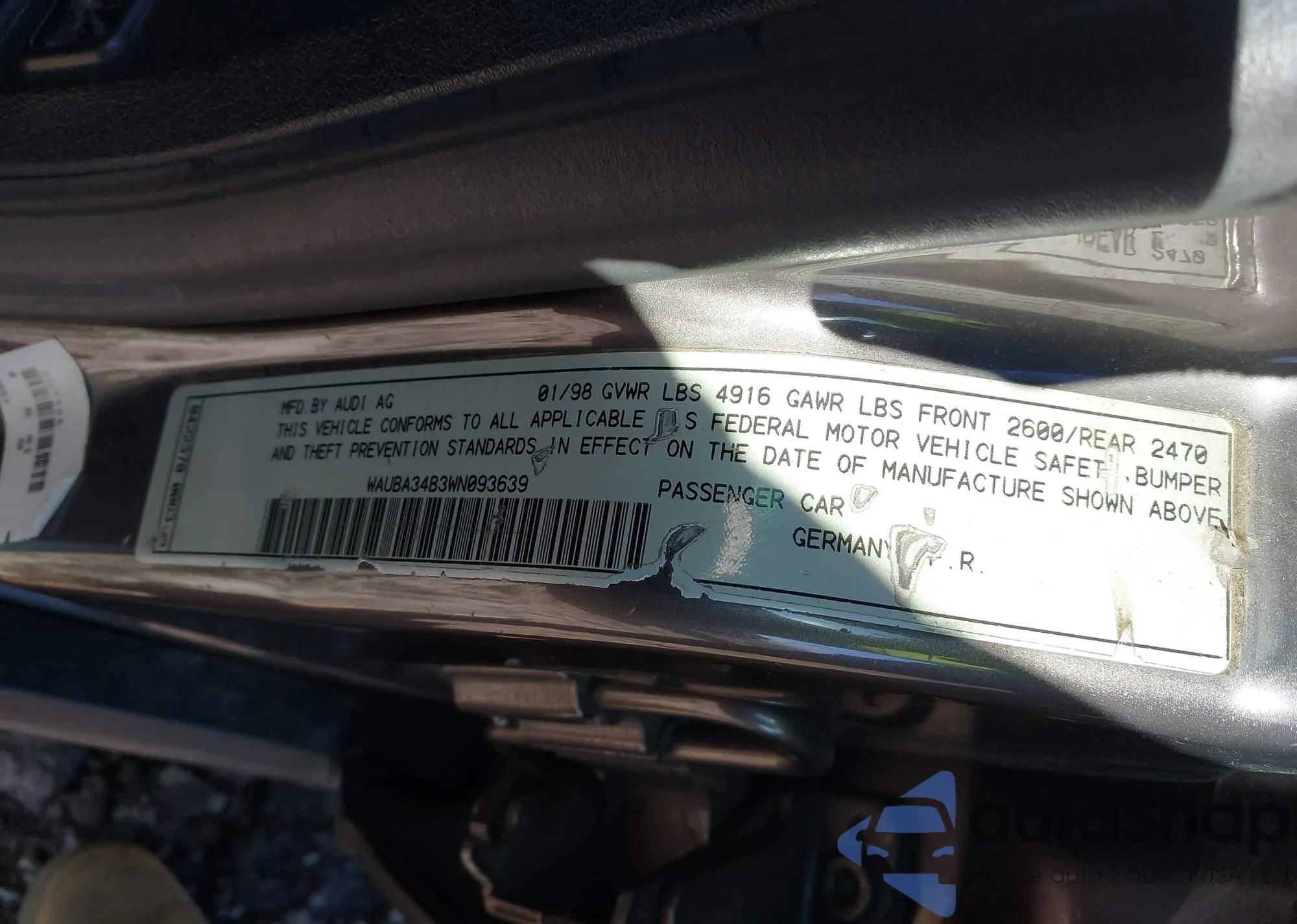 1998 Audi A6 from USA, damaged, VIN WAUBA34B3WN093639