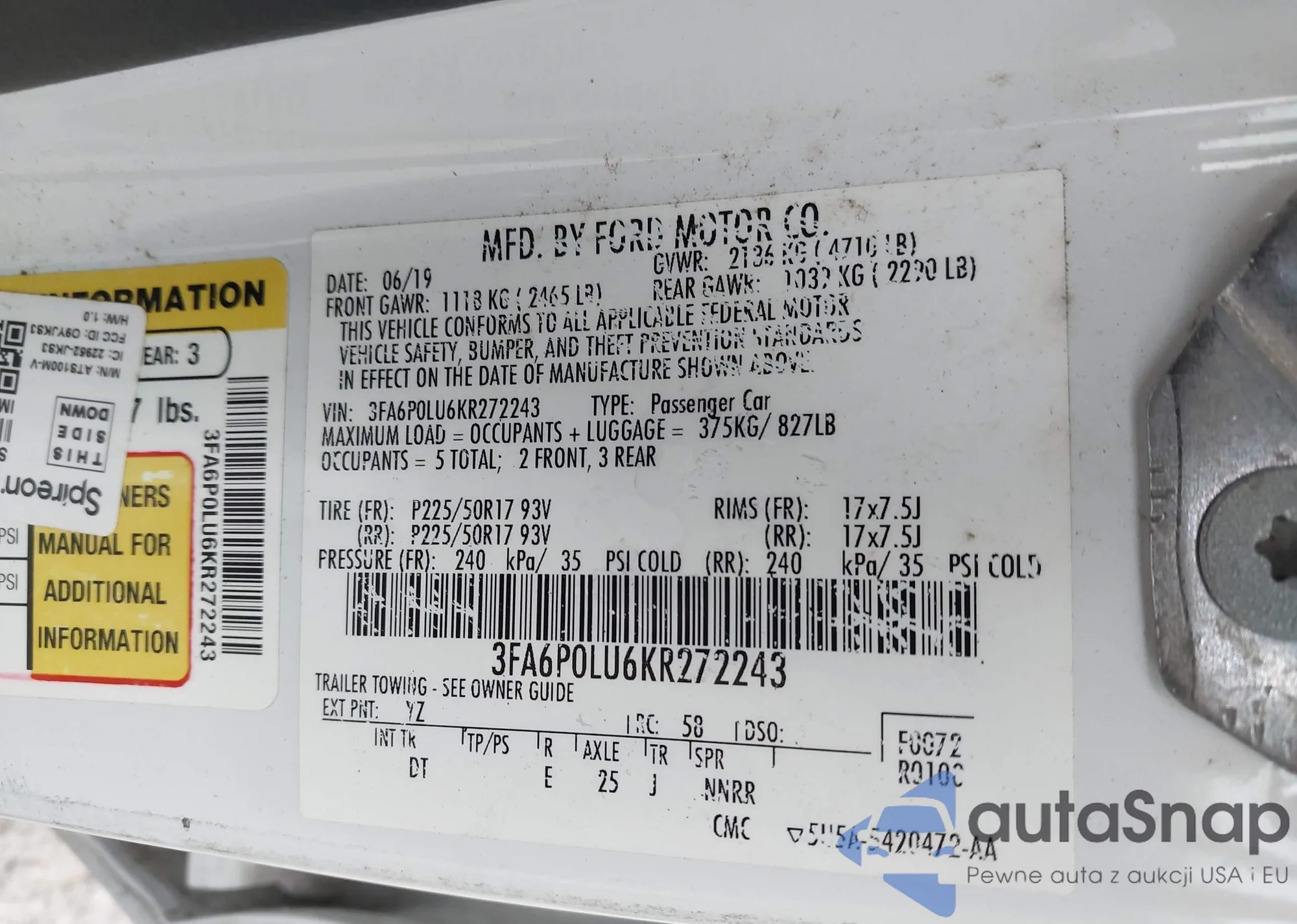 • VIN 3FA6P0LU6KR272243