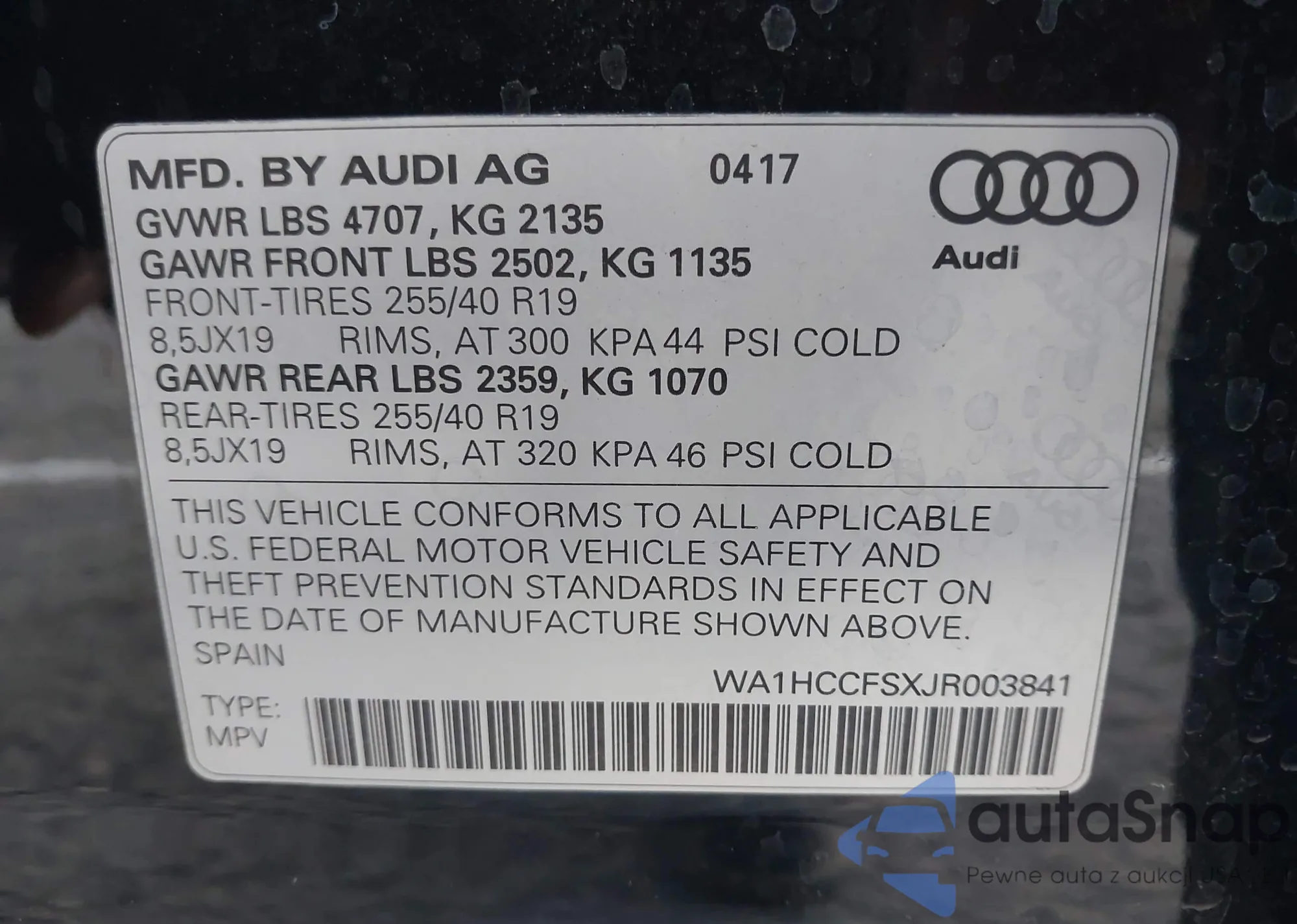 • VIN WA1HCCFSXJR003841