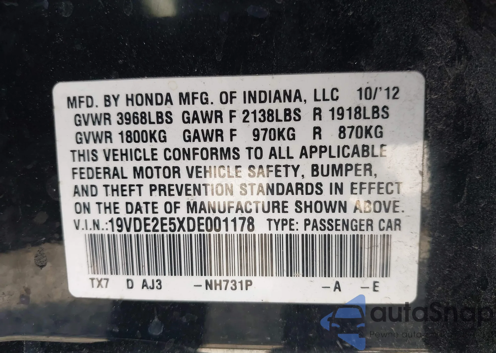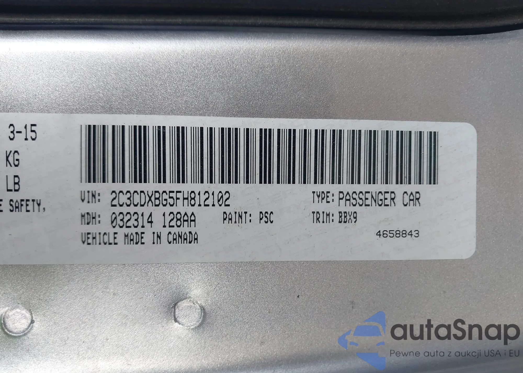 • VIN 2C3CDXBG5FH812102
