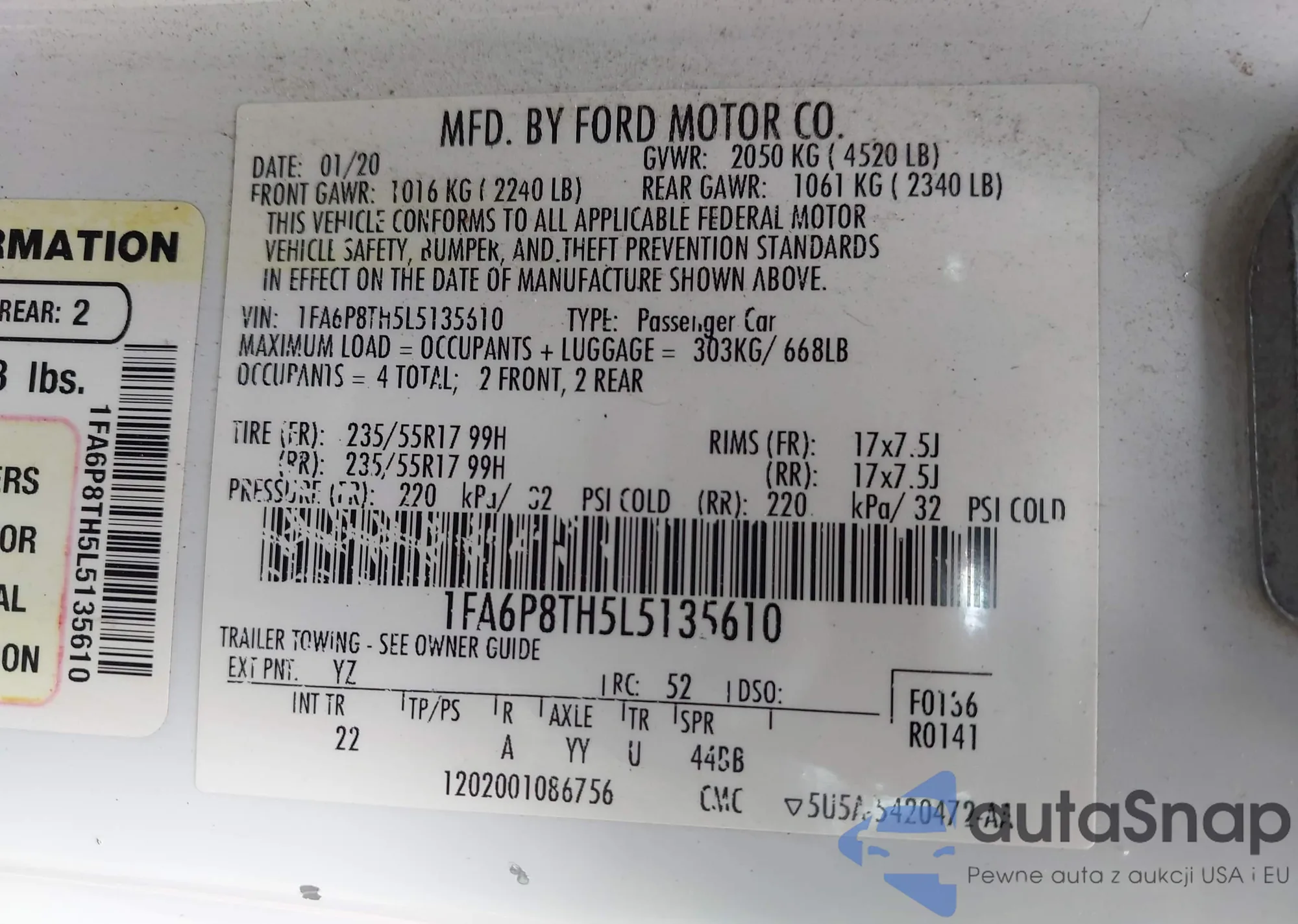 • VIN 1FA6P8TH5L5135610