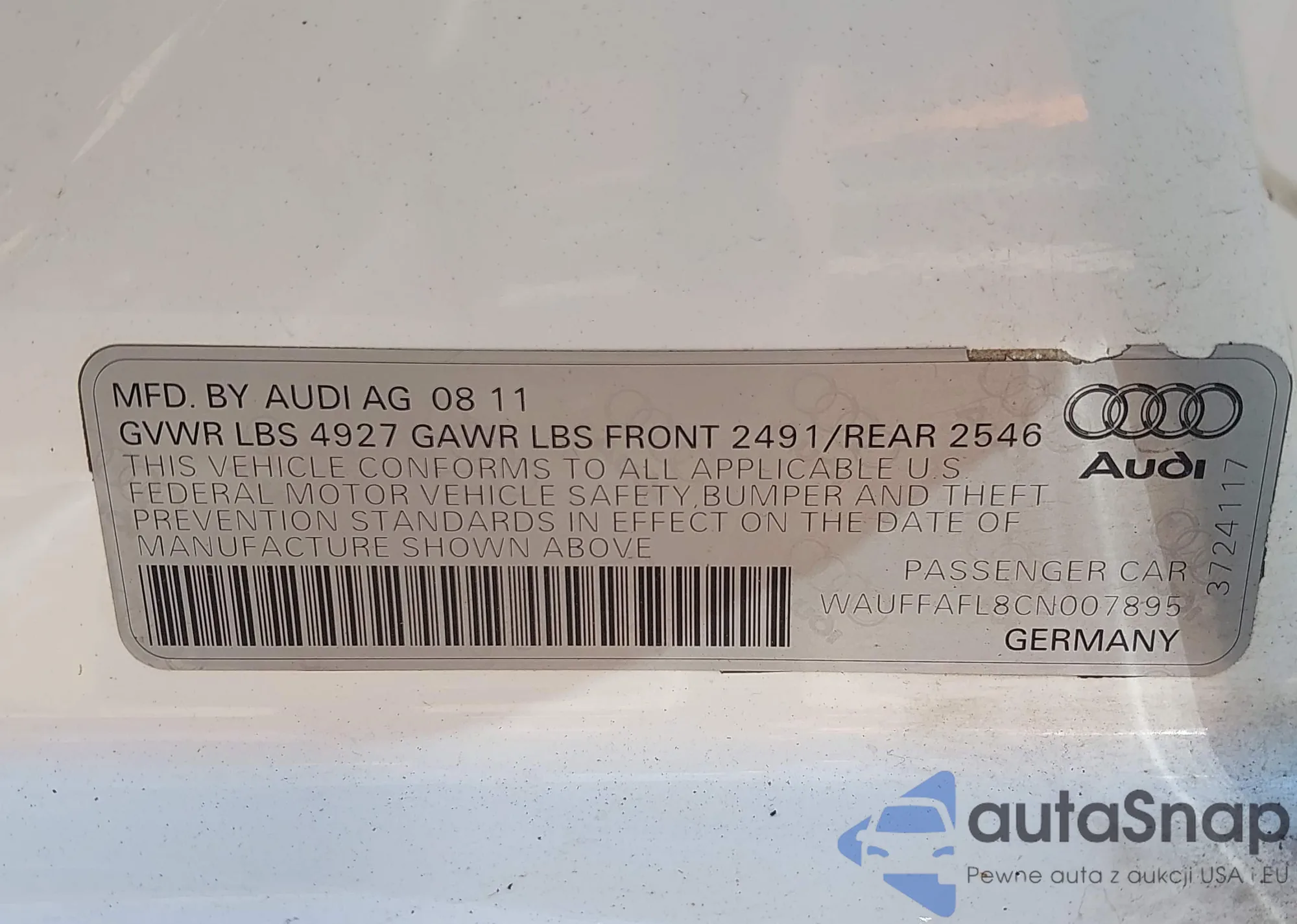 LOT: 41809490 VIN: WAUBA34B3WN093639