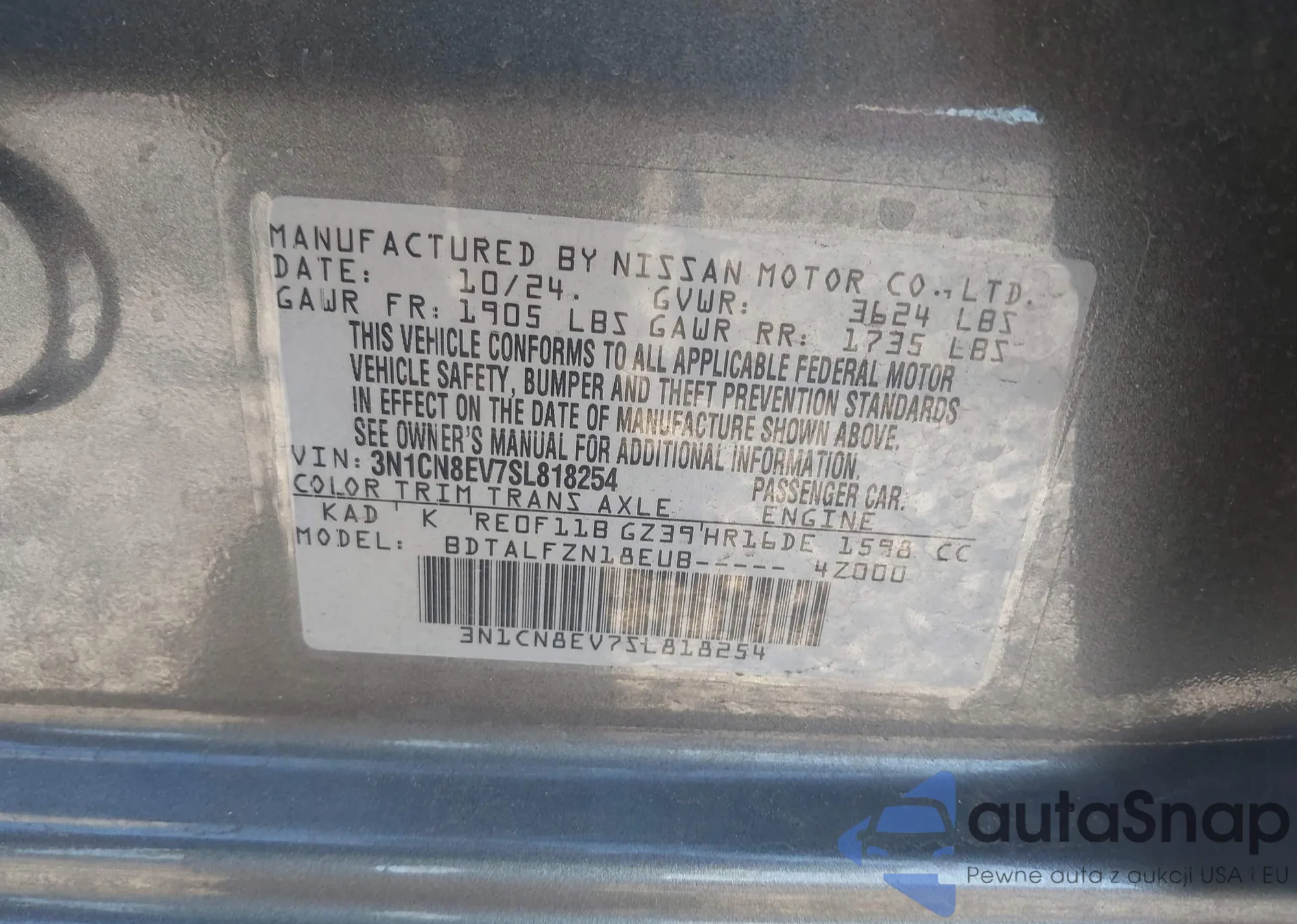 • VIN 3N1CN8EV7SL818254