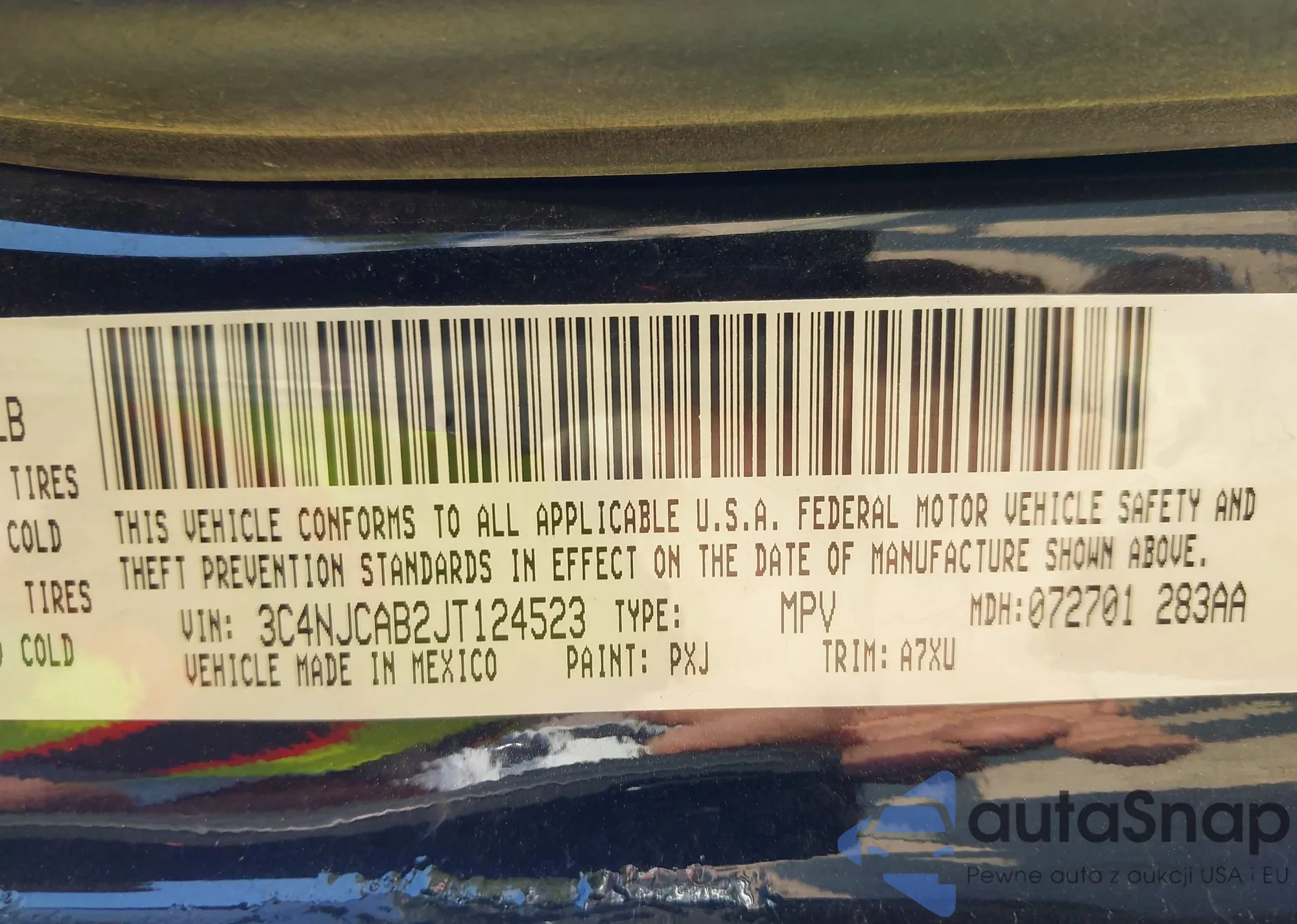 • VIN 3C4NJCAB2JT124523