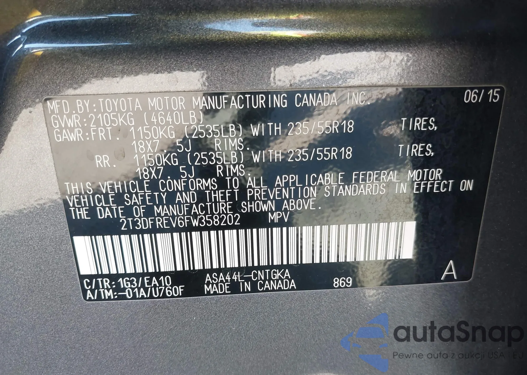 LOT: 43300678 VIN: 2T3C1RFV6SW408406