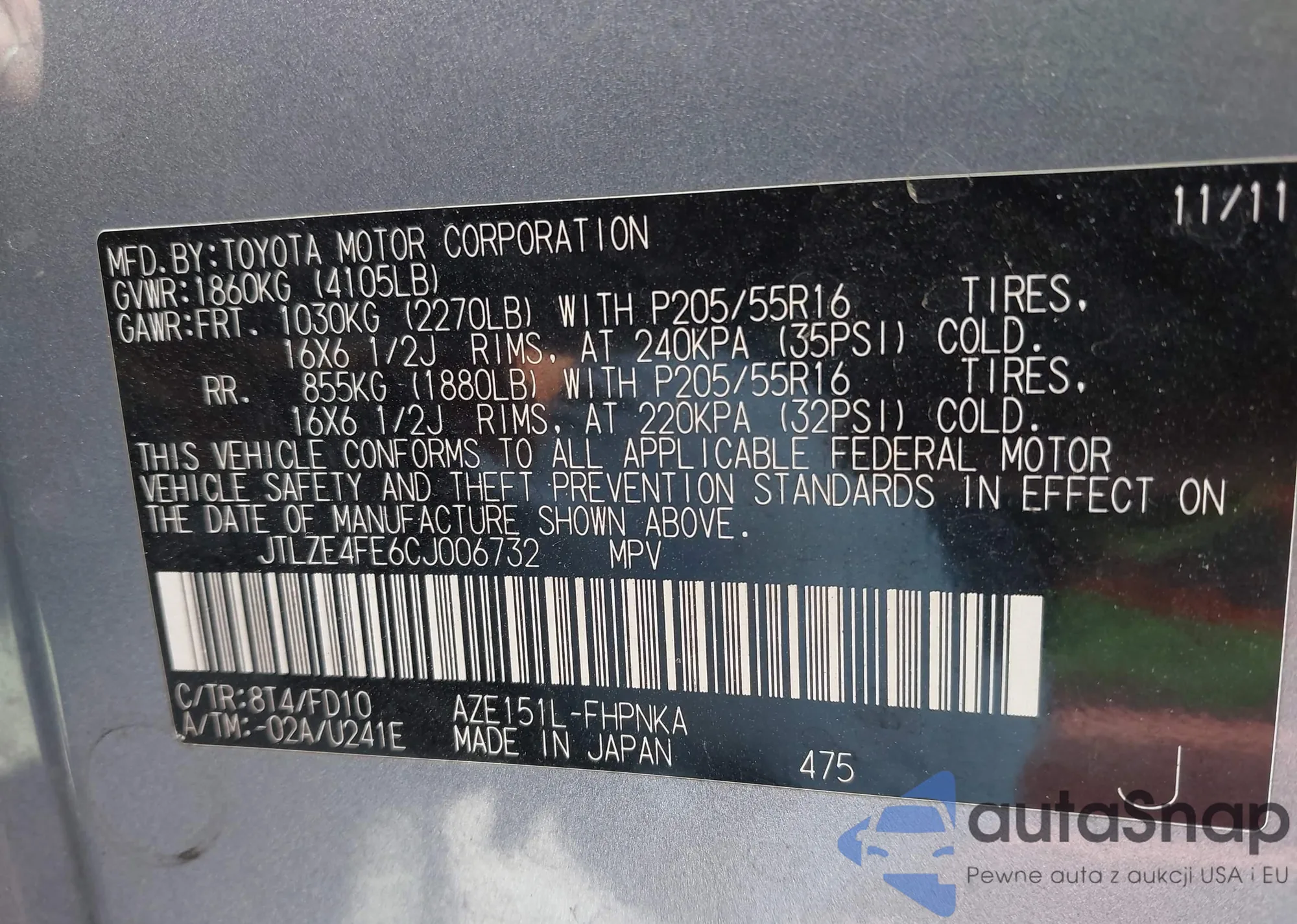 • VIN JTLZE4FE6CJ006732