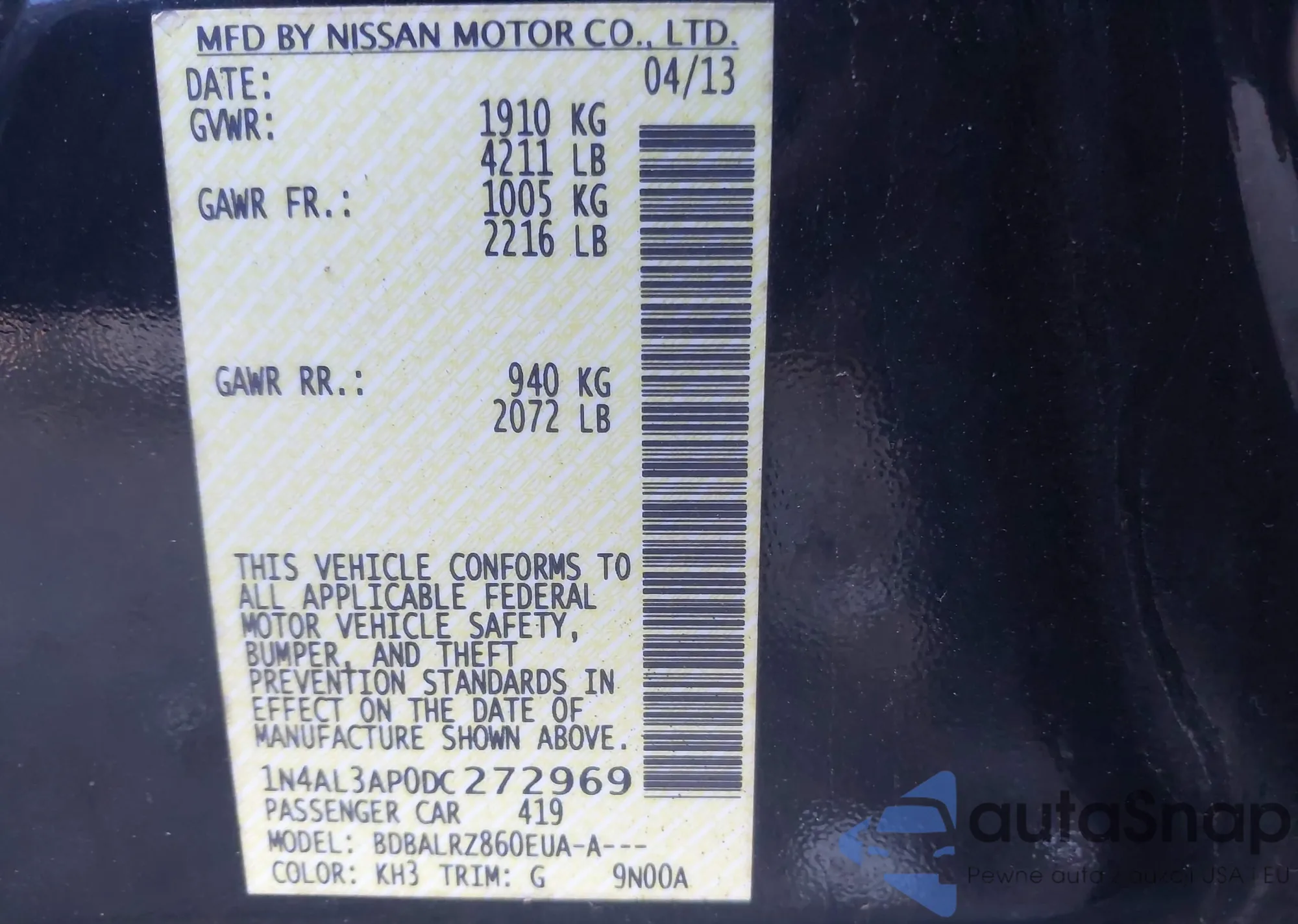 • VIN KMHD35LE9DU092958
