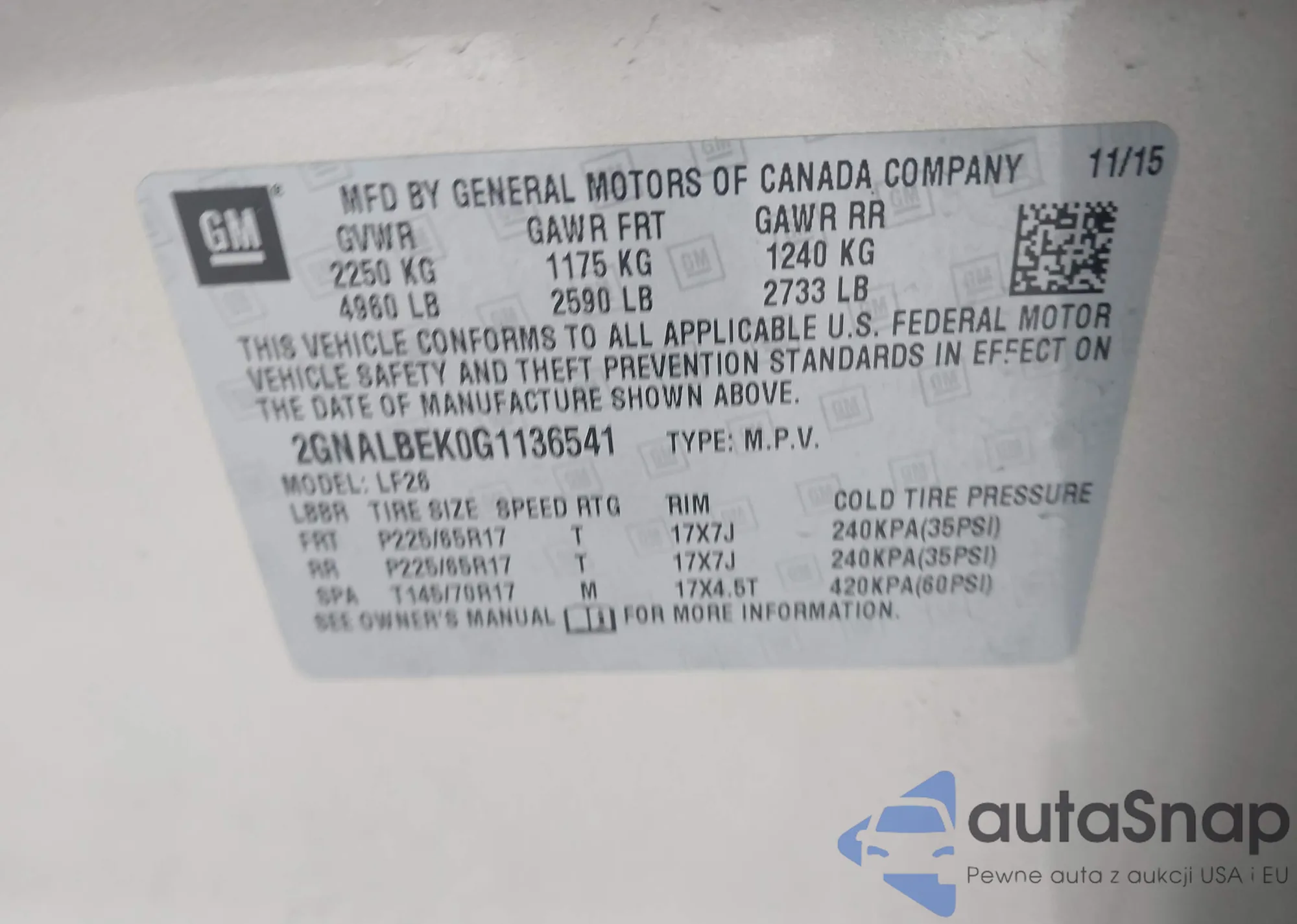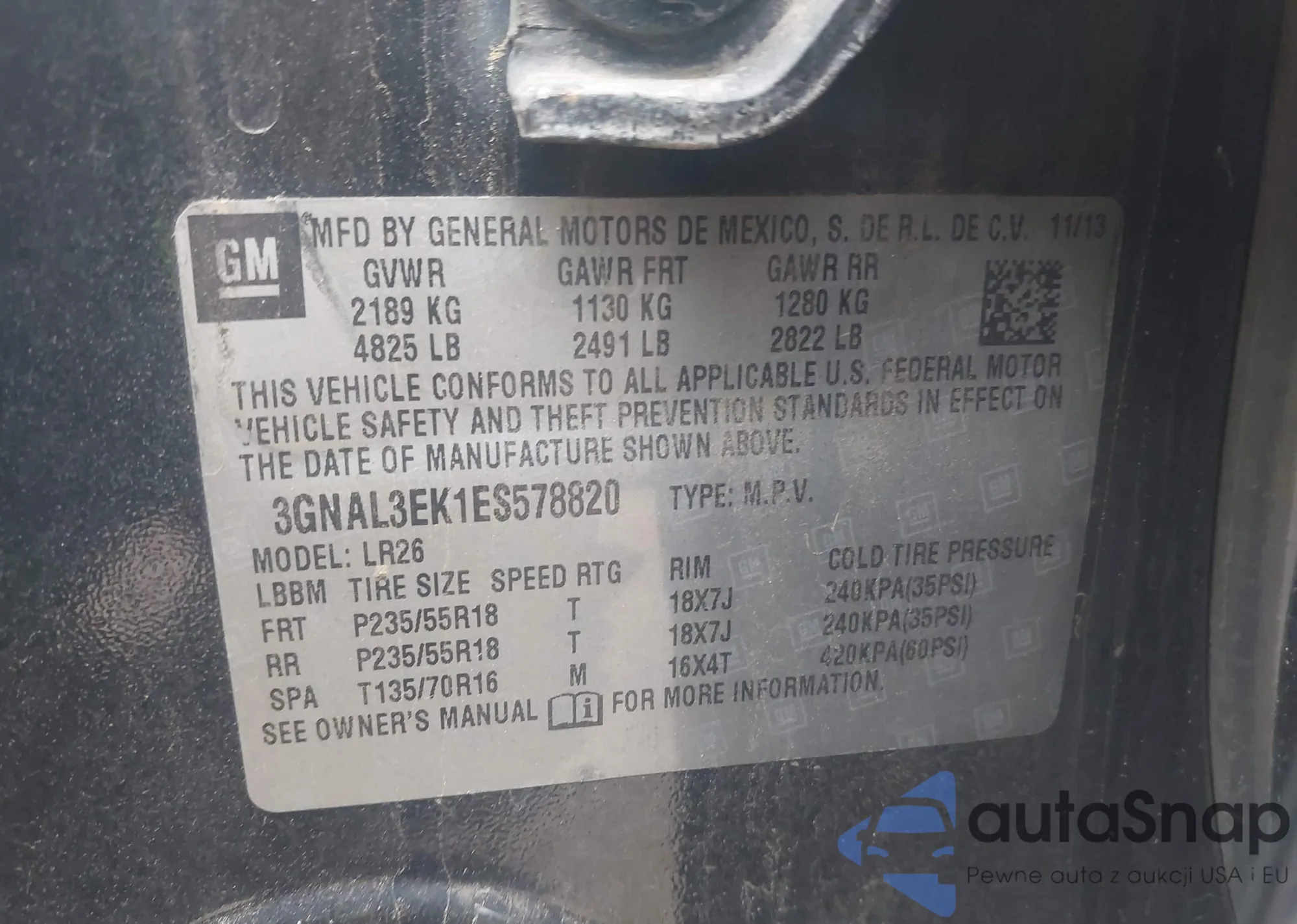 LOT: 43475534 VIN: KL7CJPSB6LB002908