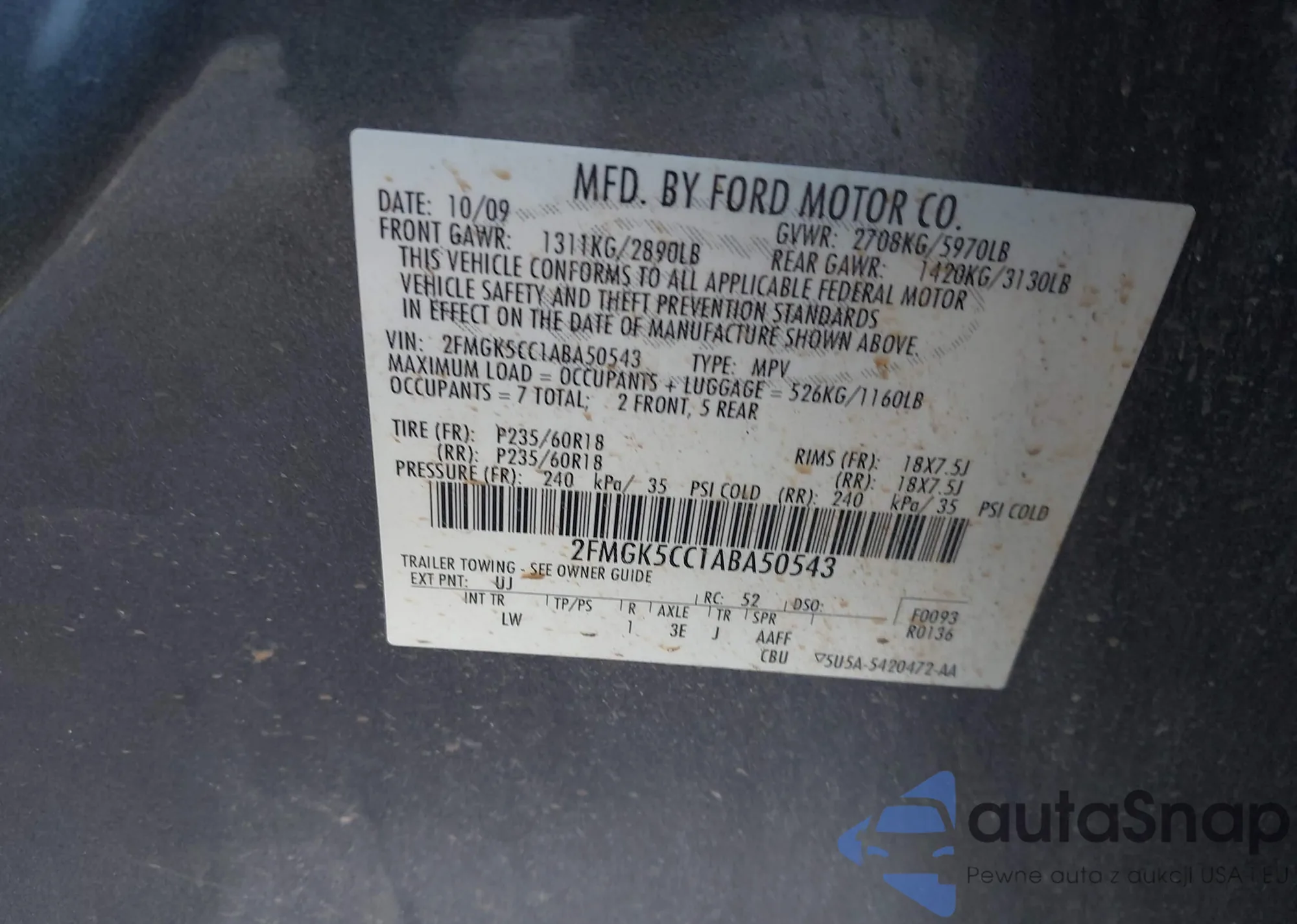 LOT: 43692836 VIN: 1ZVBP8EM0D5250164