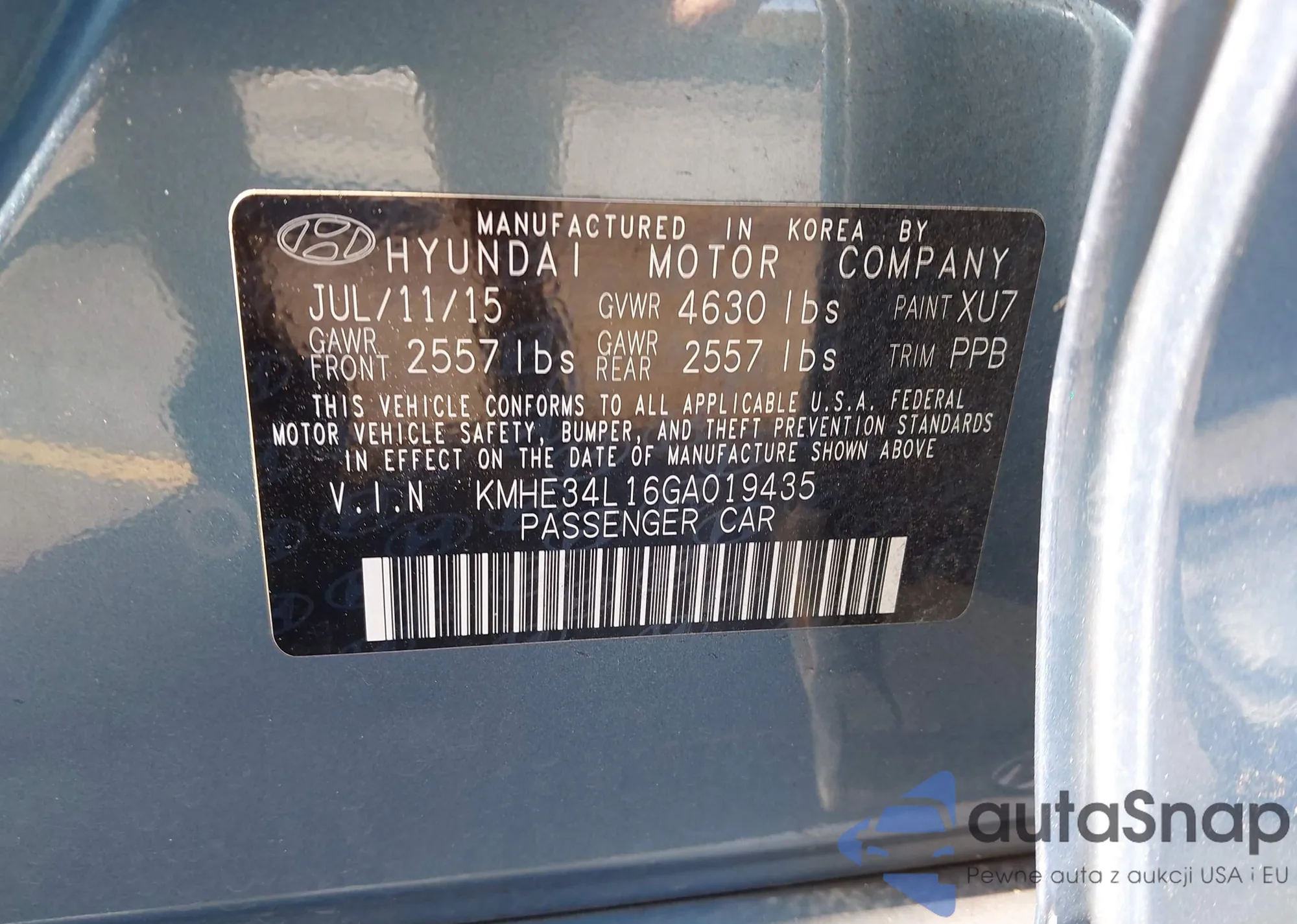 LOT: 43636677 VIN: KMHE34L16GA019435