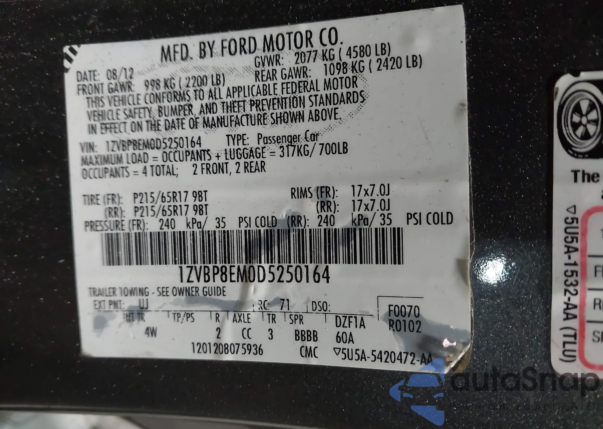 • VIN 1ZVBP8EM0D5250164