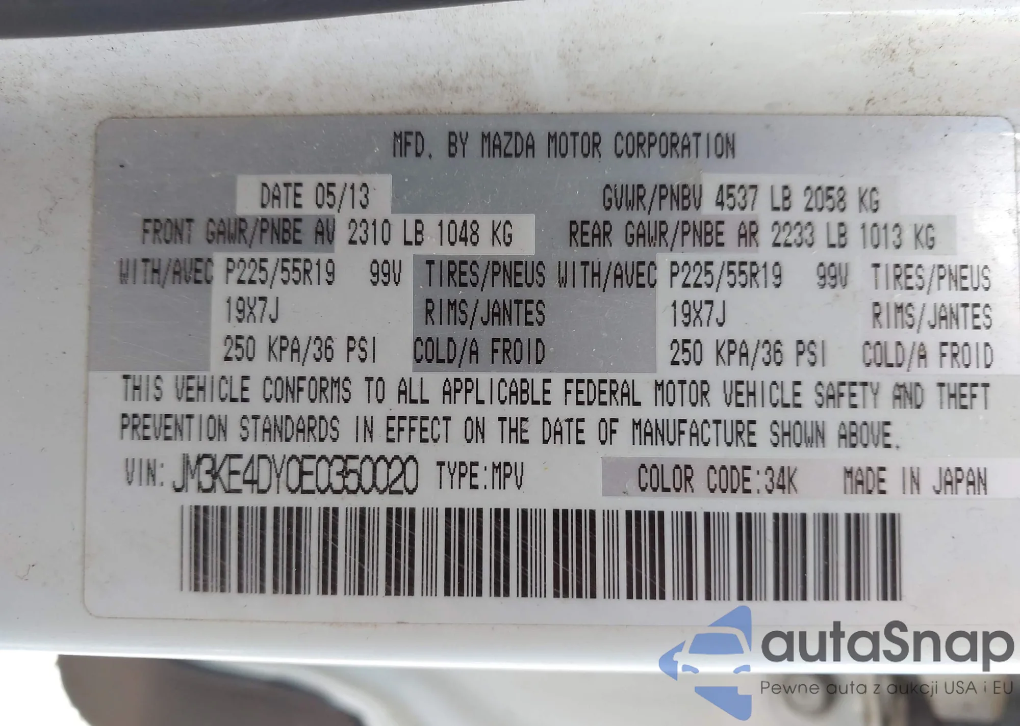 LOT: 43407107 VIN: JM3KE4DY0E0350020
