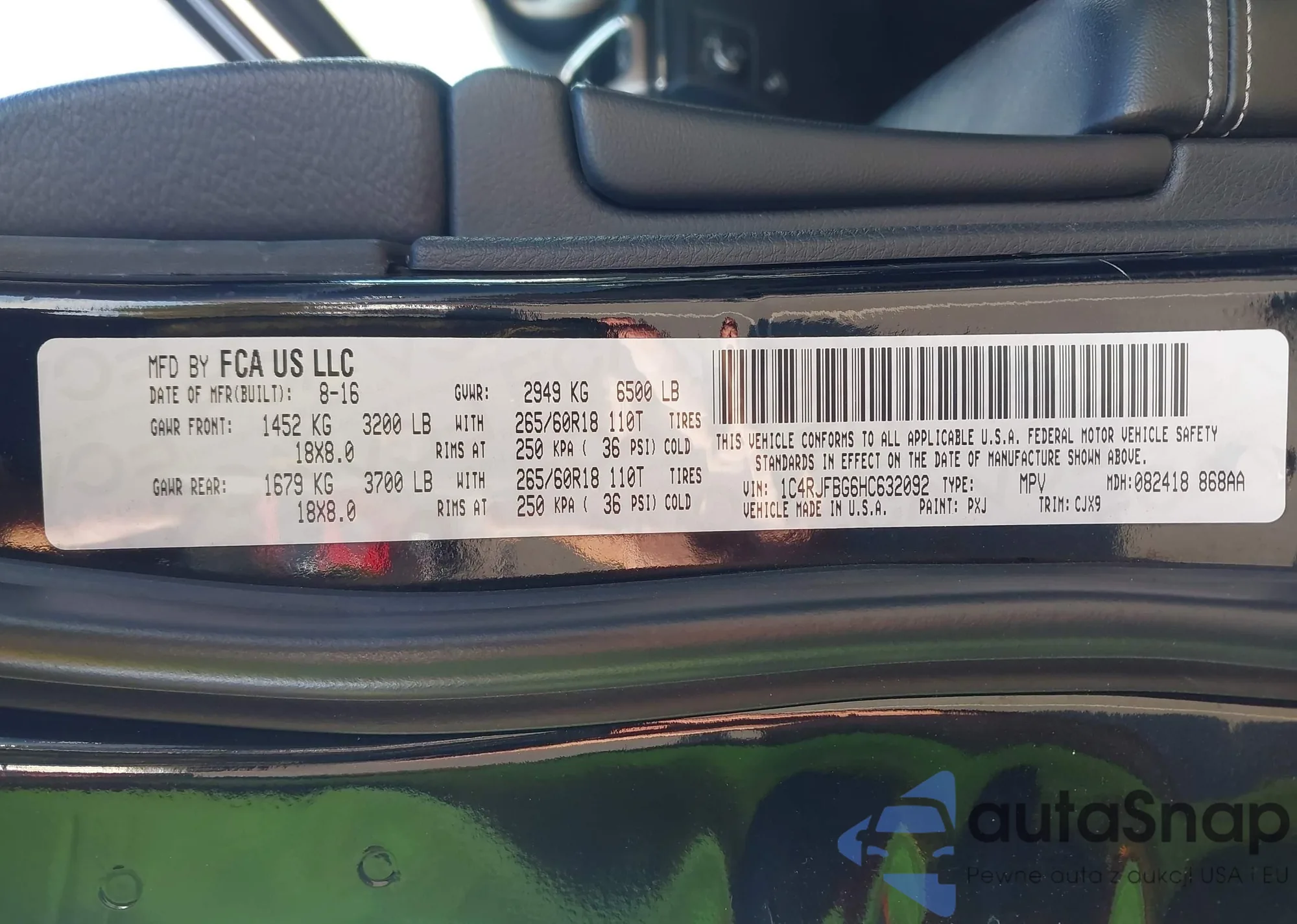 • VIN 1C4RJFBG6HC632092
