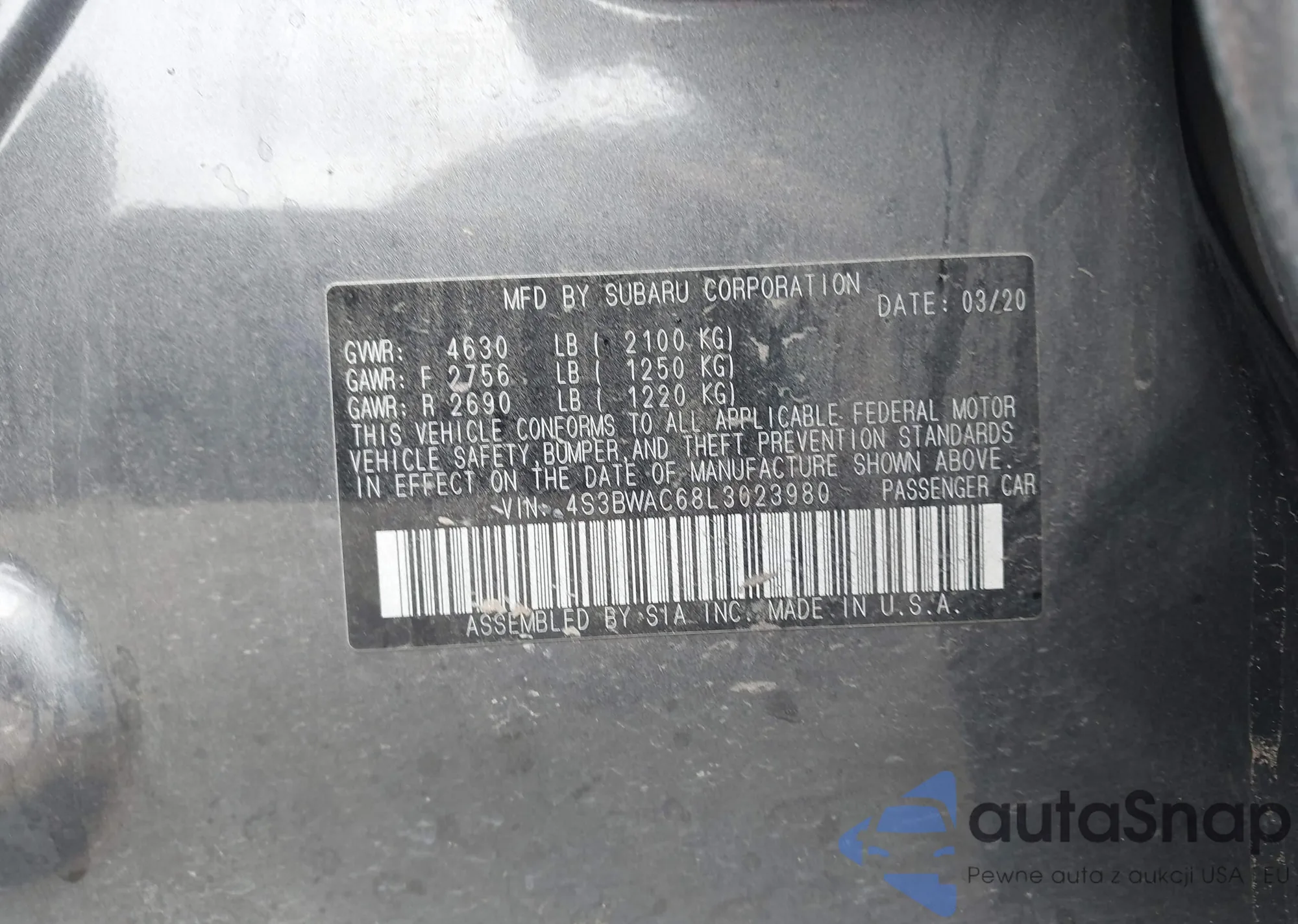 LOT: 43295592 VIN: 5YJYGDED0MF133544
