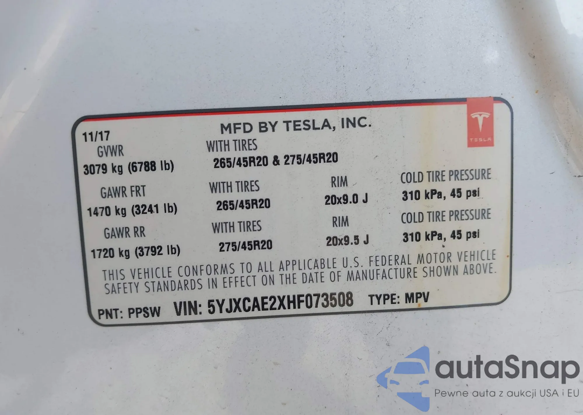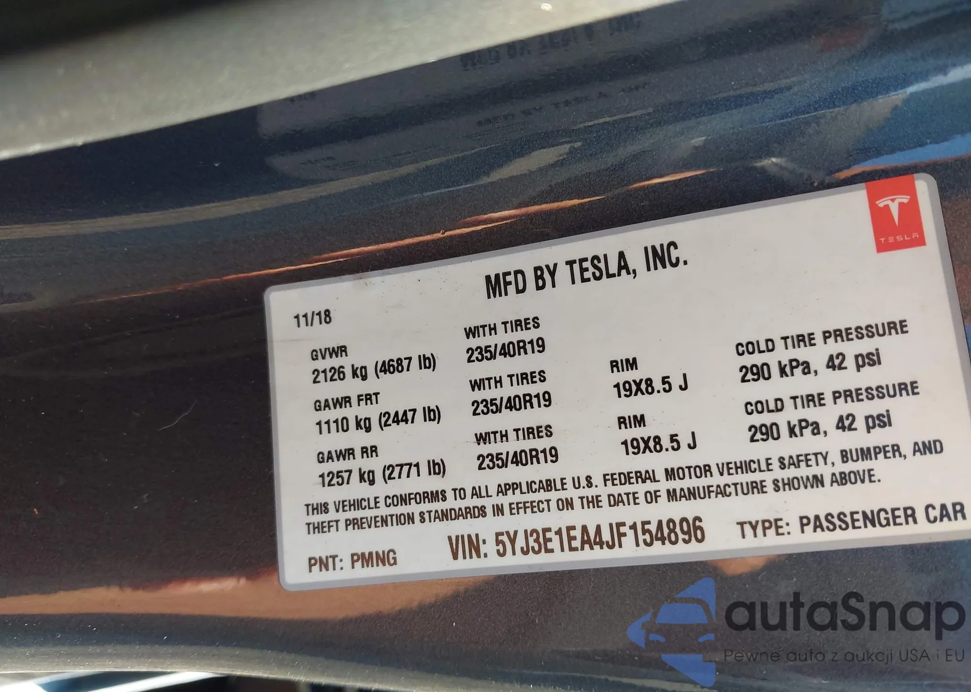 • VIN 5YJ3E1EA4JF154896