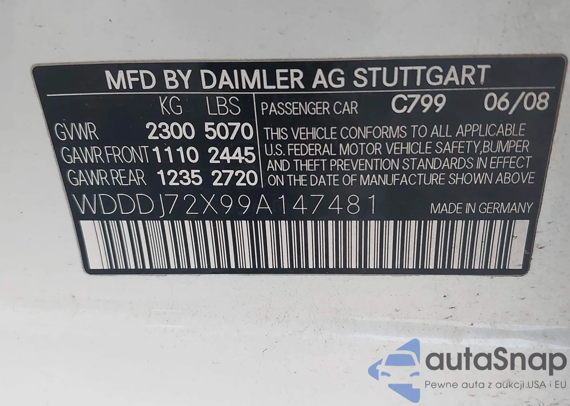 • VIN WDDDJ72X99A147481