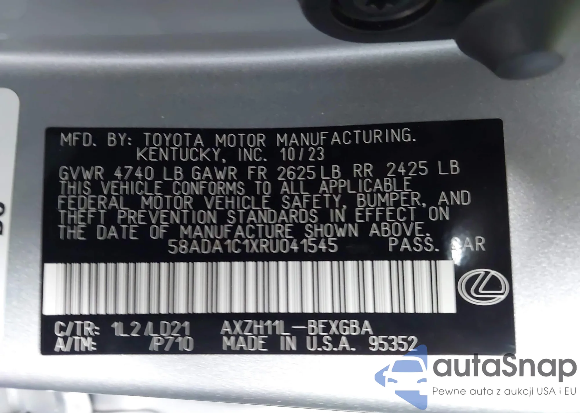 LOT: 43309381 VIN: 58ADA1C1XRU041545