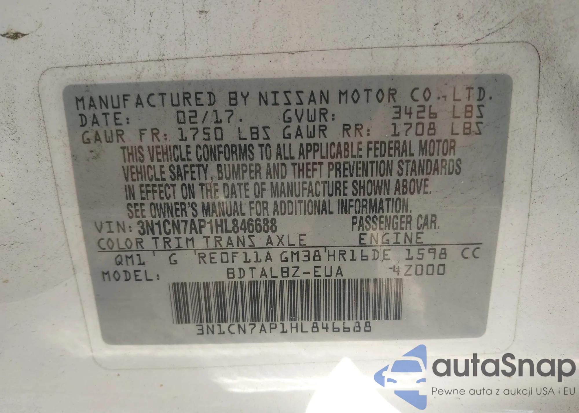 • VIN 3N1CN7AP1HL846688