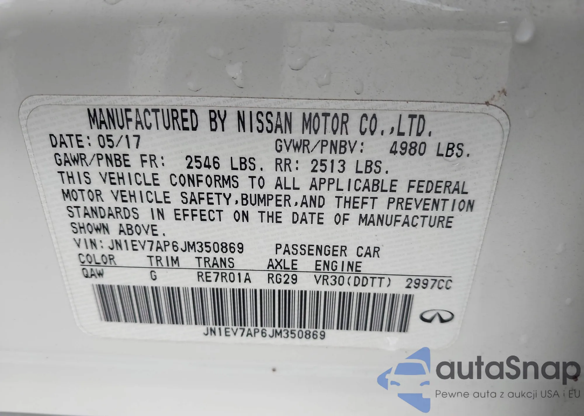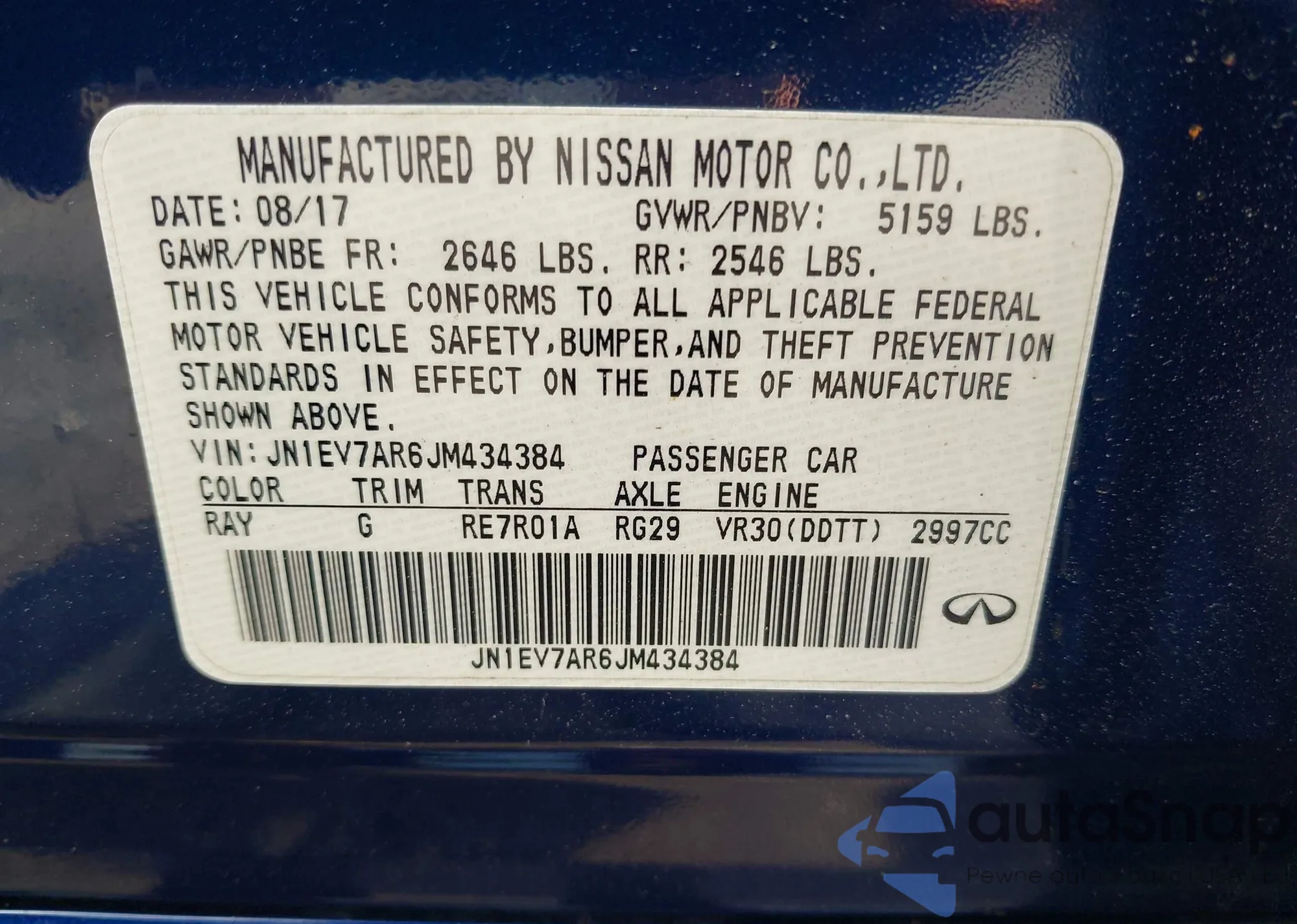 LOT: 42602980 VIN: JN1EV7AR6JM434384