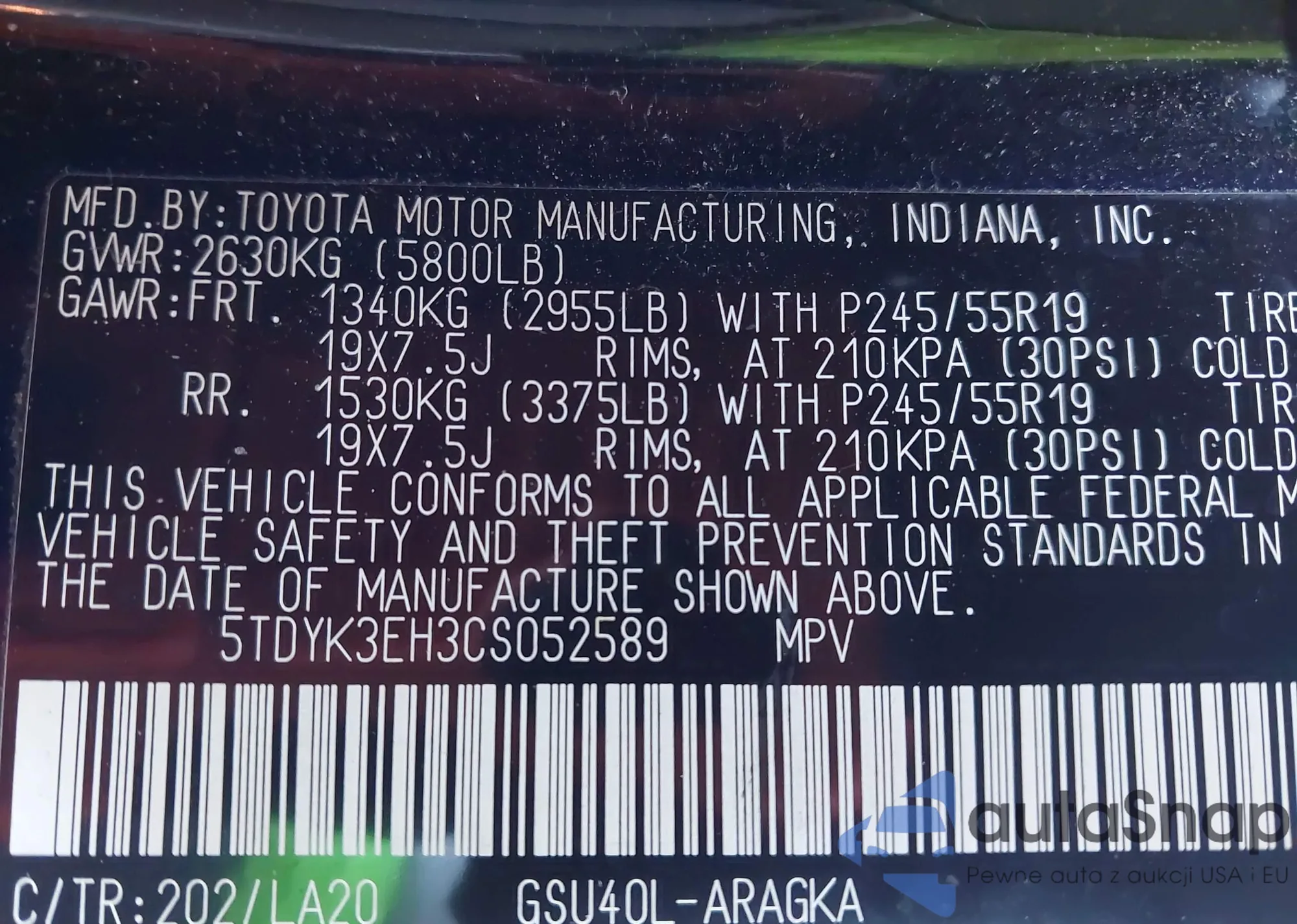 • VIN KNAGU4LE7K5032481