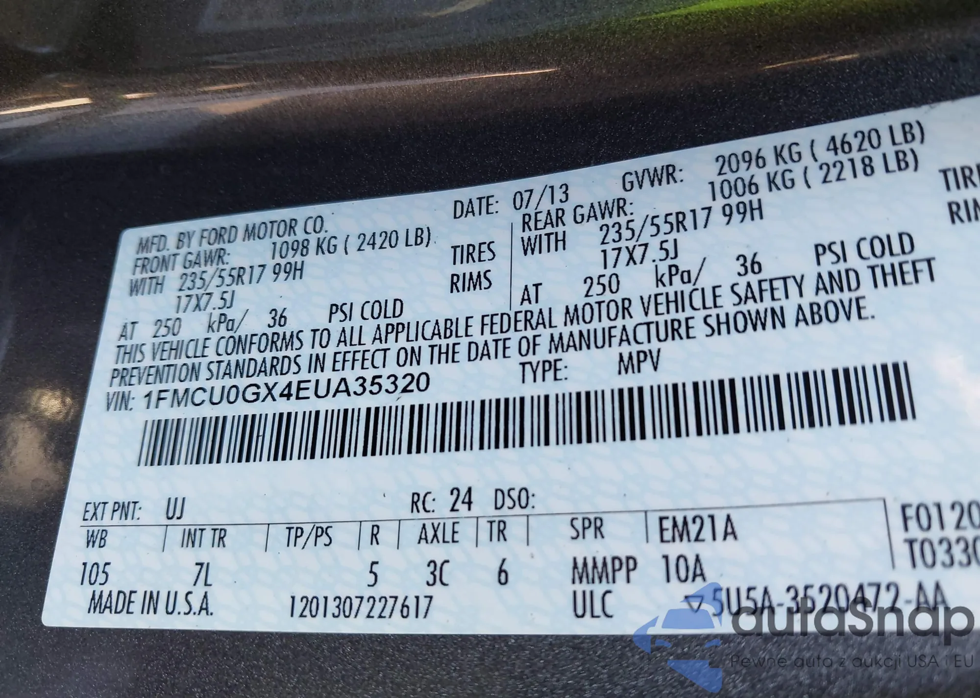 • VIN 1FMCU0GX4EUA35320