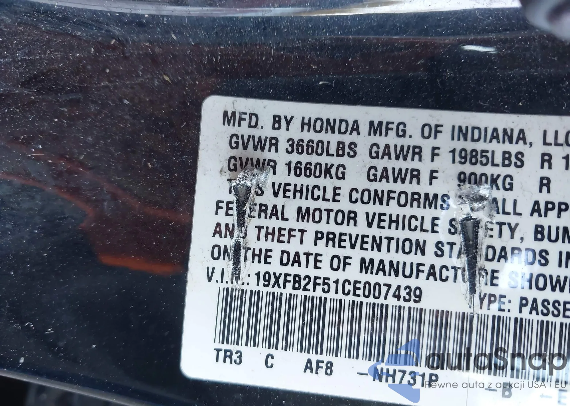 • VIN 19XFB2F51CE007439