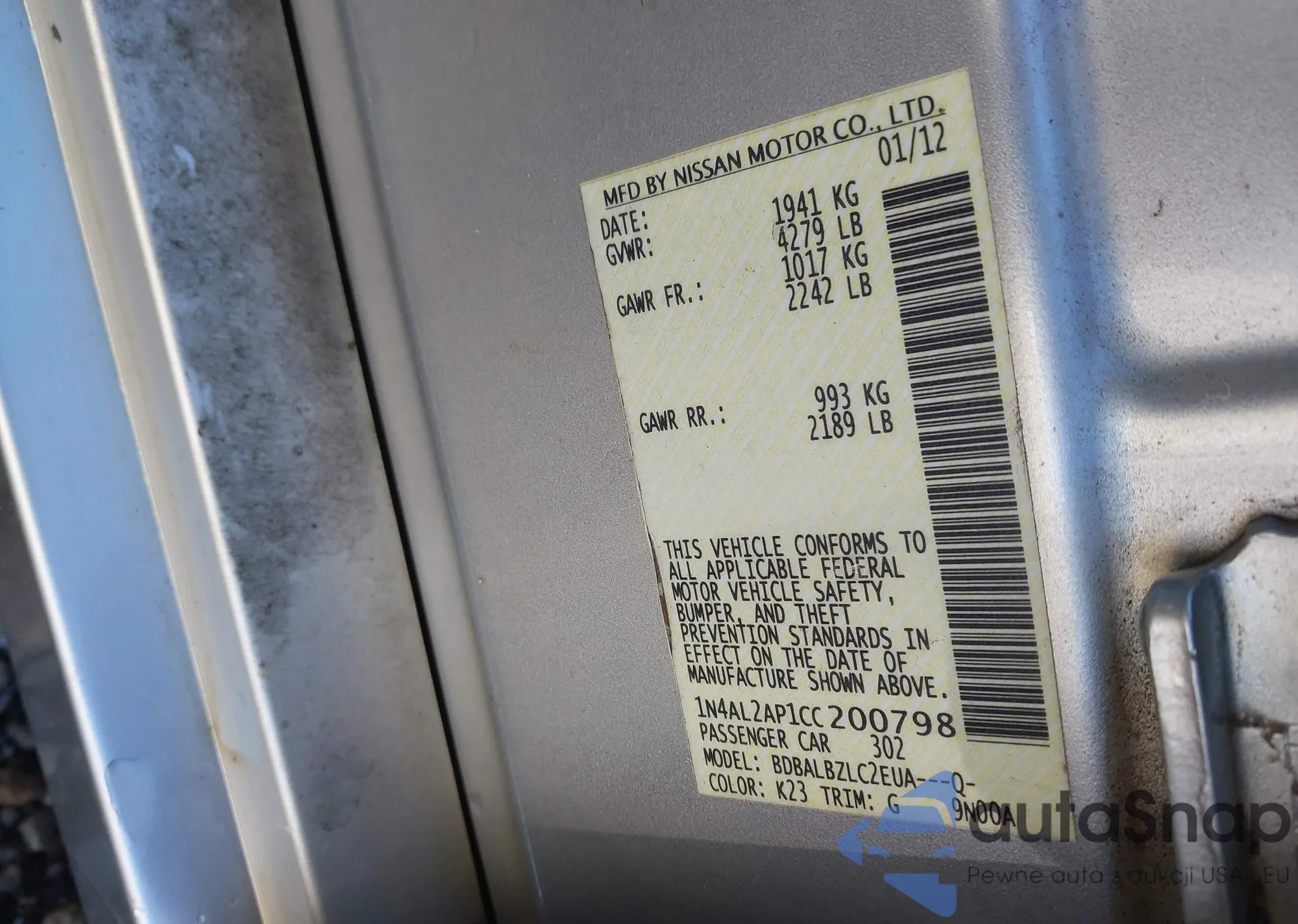 • VIN 1N4AL3AP8FN370462