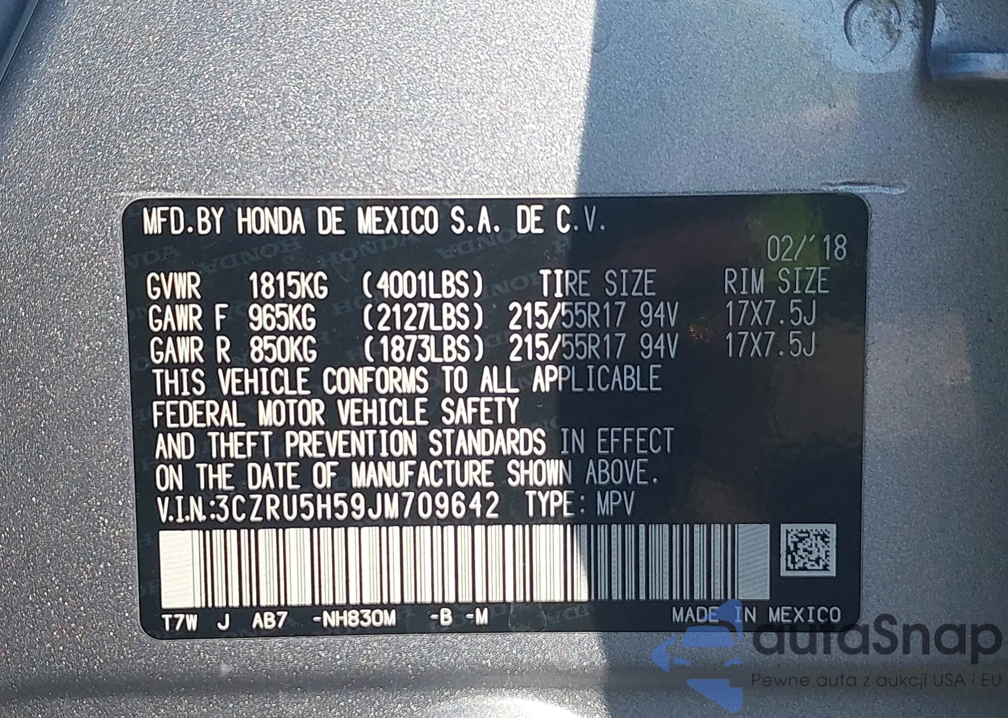 • VIN JHMFL4H9XSX005002