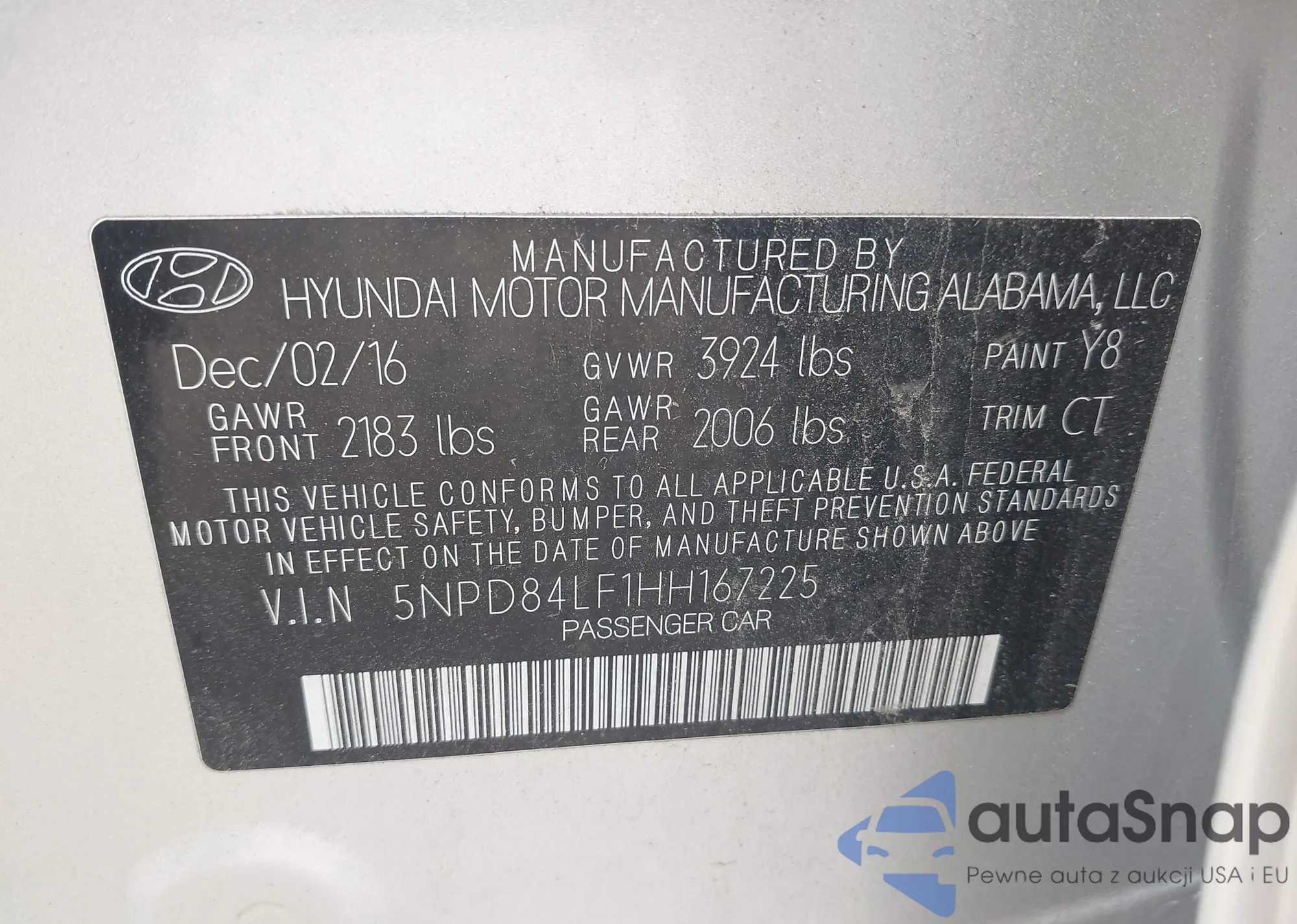 • VIN 5NPD84LF1HH167225