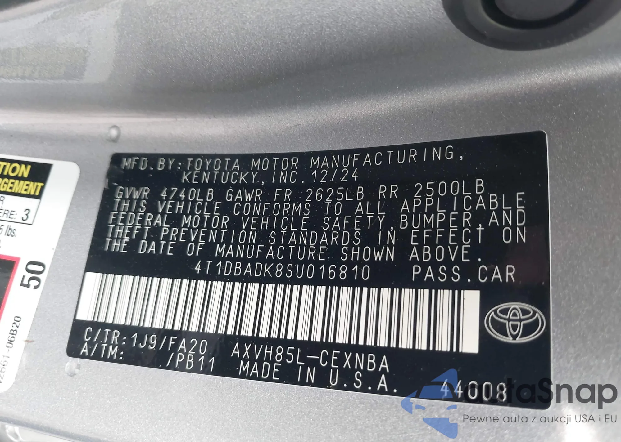 • VIN 4T1DBADK8SU016810